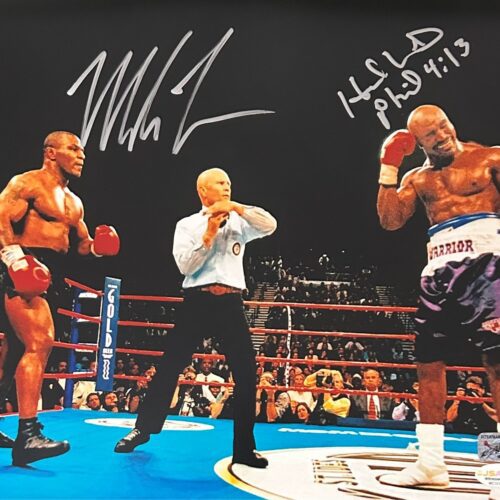 MIKE TYSON & EVANDER HOLYFIED Autographed 11×14 Photo JSA Authenticated …