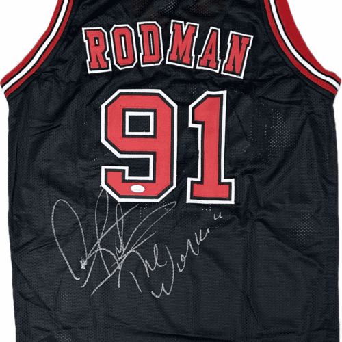 Dennis Rodman Signed Autographed Custom Red/Black Jersey JSA Authentication