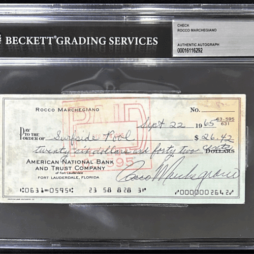 Rocco “ROCKY” Marchegiano Signed Autographed 9/22/1965 Check Beckett 16116292