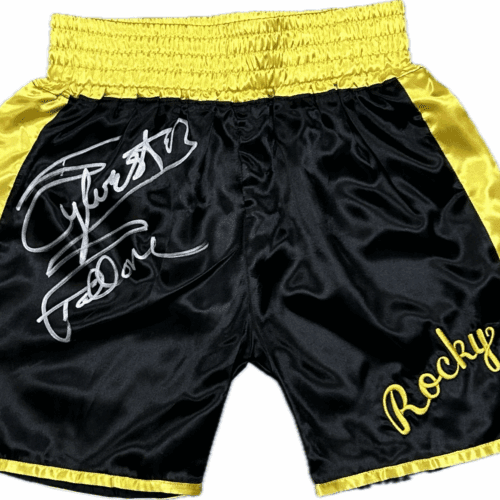 Sylvester Stallone Signed Rocky Black Yellow Trunks Beckett Authenticated