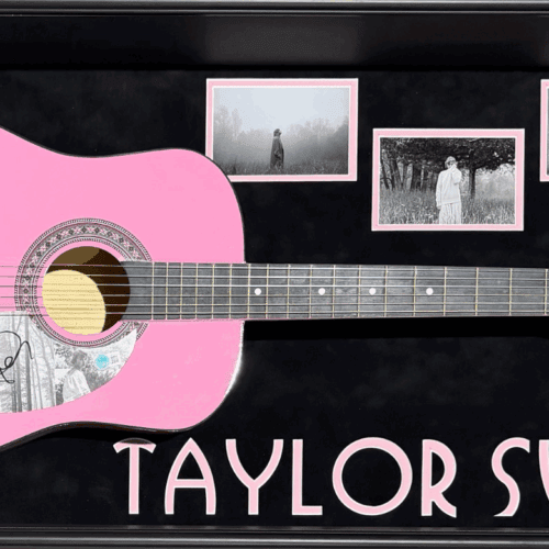 Taylor Swift Signed Pink Acoustic Guitar Framed Shadowbox Beckett Folklore