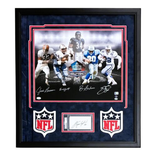 HOF RUNNING BACKS SIGNED FRAMED PHOTO & CUT PAYTON BROWN CAMPBELL SANDERS SMITH