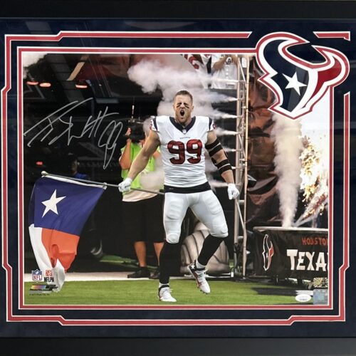 J.J. WATT AUTOGRAPHED FRAMED 16×20 PHOTO JSA HOUSTON TEXANS