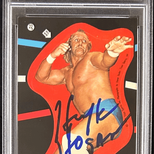 Hulk Hogan Signed 1985 Topps WWF Sticker Card #22 PSA/DNA 63134638 Auto 9