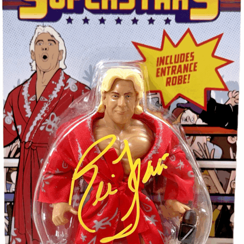 RIC FLAIR AUTOGRAPHED MATEL WWE SUPERSTARS ACTION FIGURE JSA YELLOW