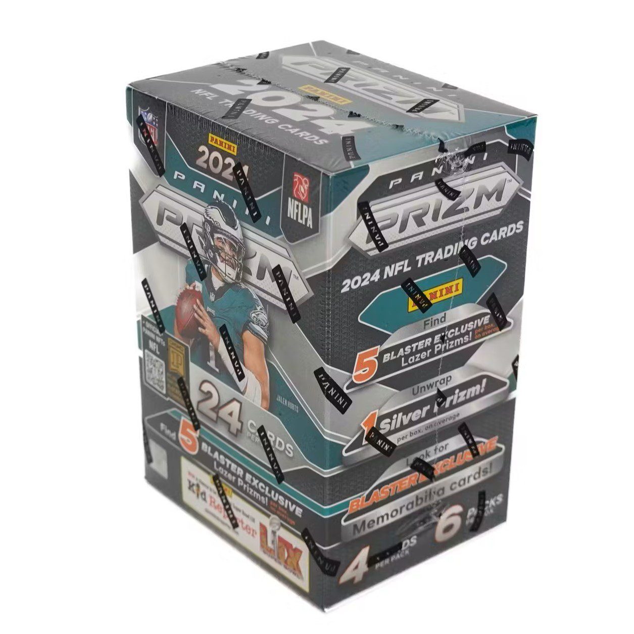 Panini presents 2024 NFL Prizm Football! Hunt for the 2024 Rookie Class in one of the year’s most anticipated releases. Be on the lookout for Silver Prizms, Lazer Prizms, and exclusive autograph and memorabilia content that can only be found in 2024 NFL Prizm! Look for the Blaster Exclusive Memorabilia cards!