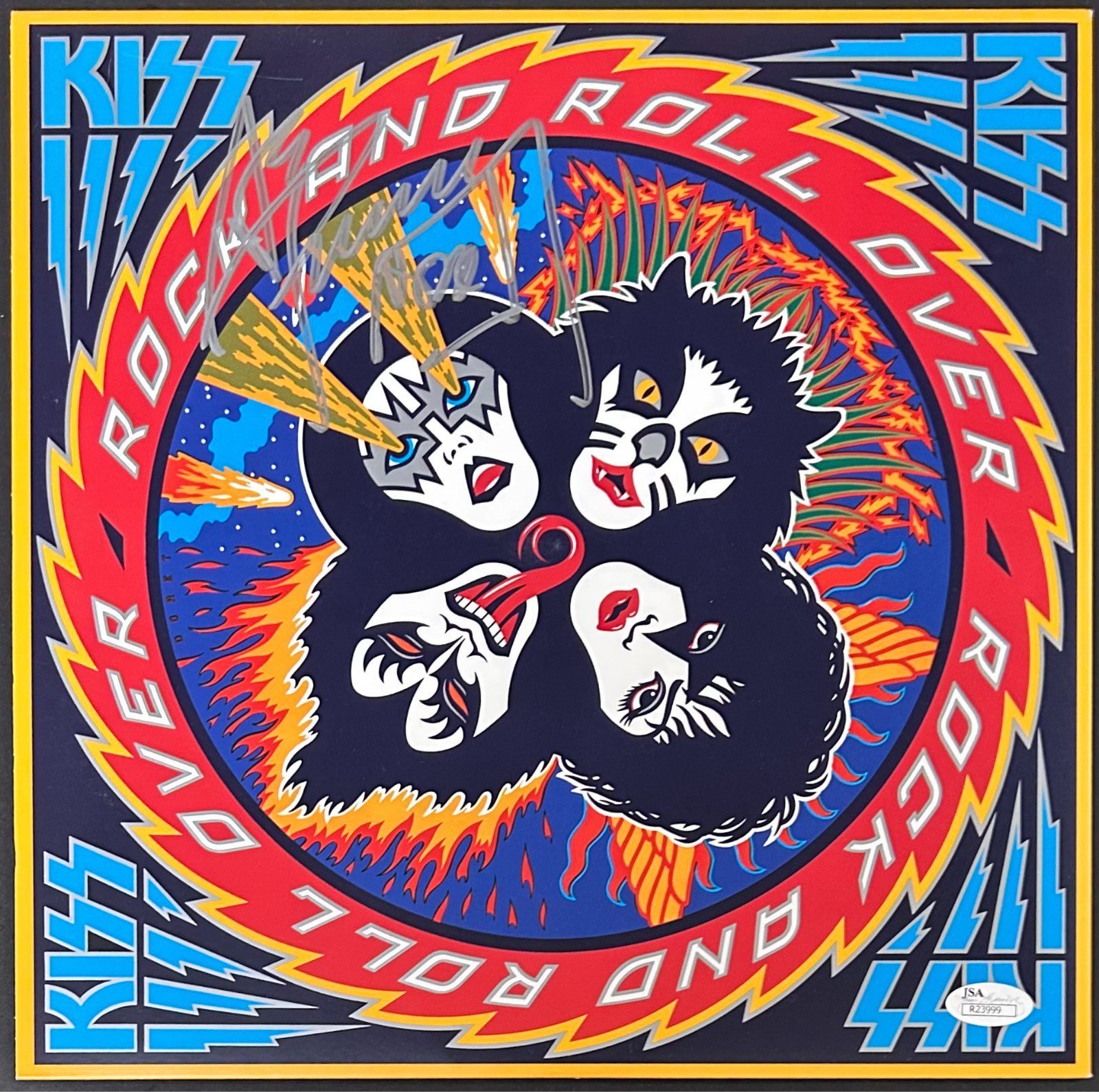 This is a hand autographed vinyl record signed by the person listed above. This is a reprint of the KISS album Rock and Roll Over. This item has a JSA Authentication, which comes with a JSA #’ed tamper proof sticker attached to the item. All of our items are signed either at a public autograph appearance or a private signing. All of our autographs are 100% Authentic.