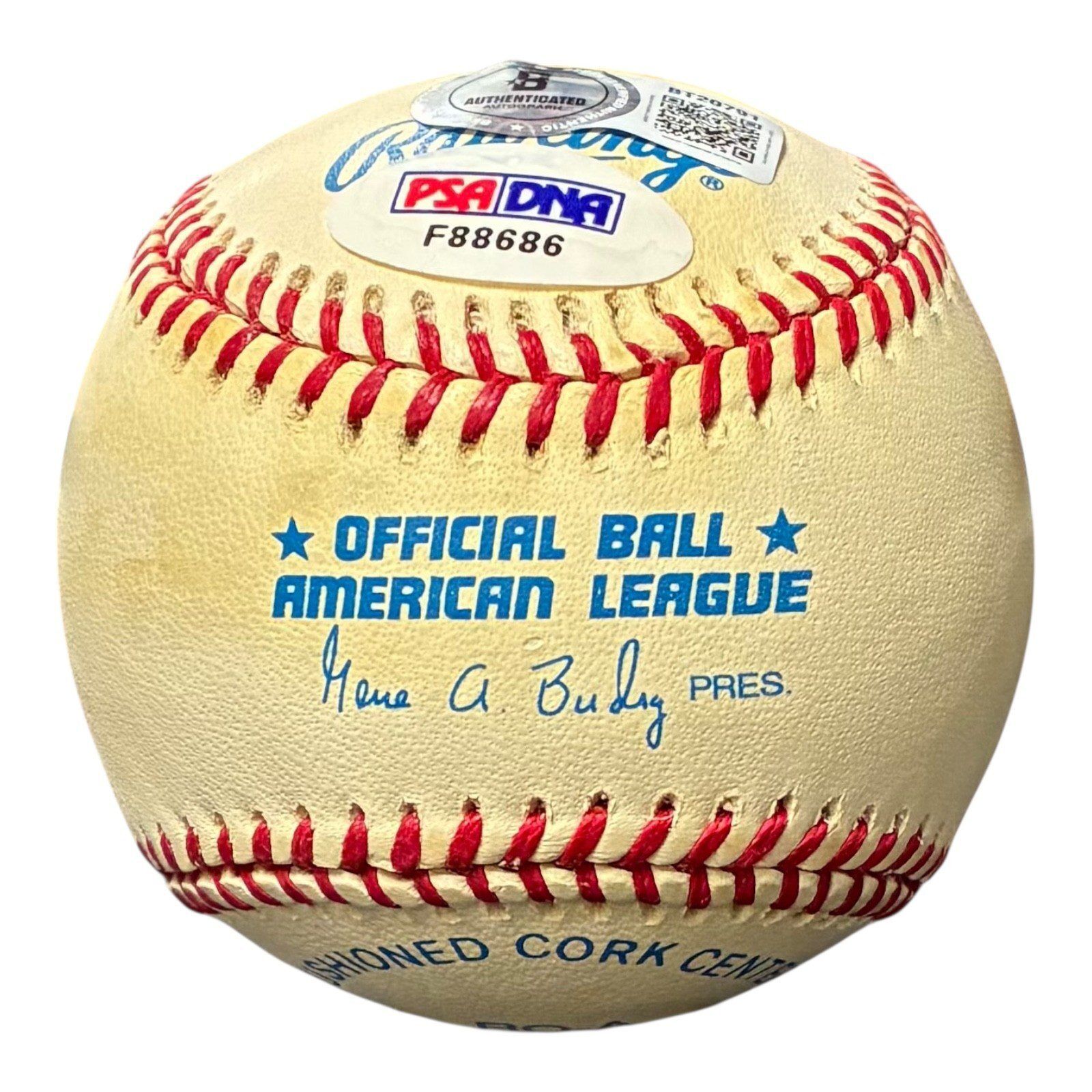 This is a hand autographed Baseball signed by the person mentioned above. This is an Official American League Baseball. This item has a Beckett Authentication sticker, which comes with a Beckett #’d tamper proof sticker attached to the item. All of our autographs are 100% Authentic.