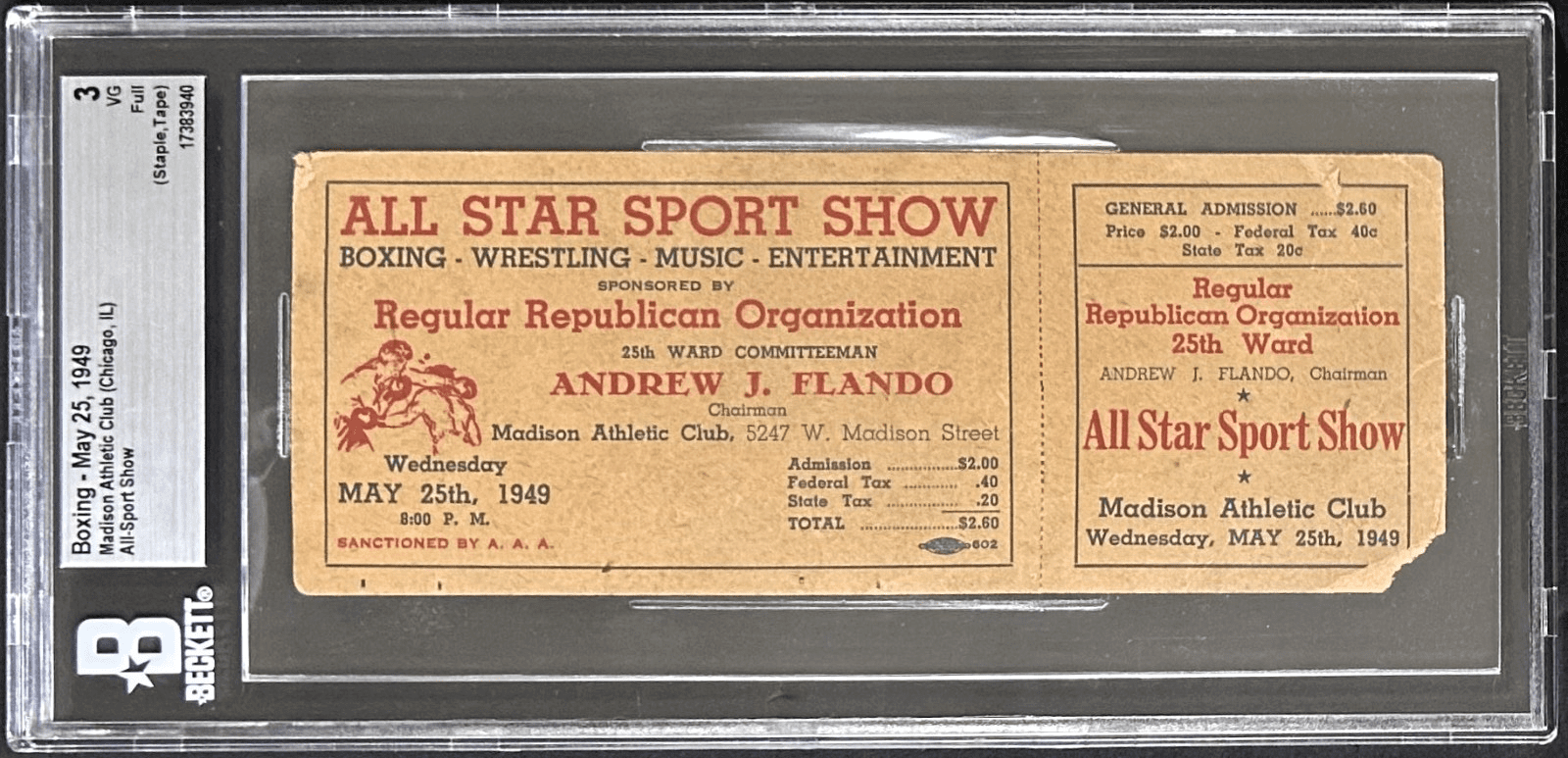 You are purchasing a ticket from the May 25, 1949 All Star Sports Boxing Show.