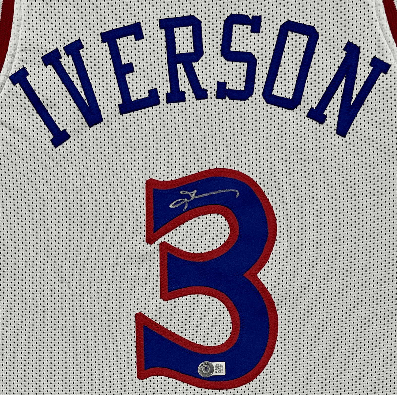 Allen Iverson Signed Autographed White/Blue/Red Jersey Beckett