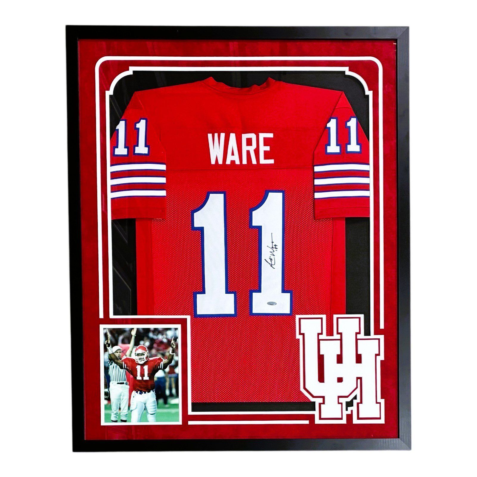 This is a hand autographed famed jersey signed by the person listed above. The measurements of the frame are 42×34. THIS IS NOT A NCAA JERSEY. THIS HAS NO TAGS, NO LOGOS, & NO EMBLEMS. This is a custom made; non name brand; authentic style jersey with all stitched letters and numbers. All jerseys are size XL and are brand new, never worn. This item has a Tristar Authentication tamper proof sticker attached to the item. You can view this items authentication on the Tristar website. All of our autographs are 100% Authentic.