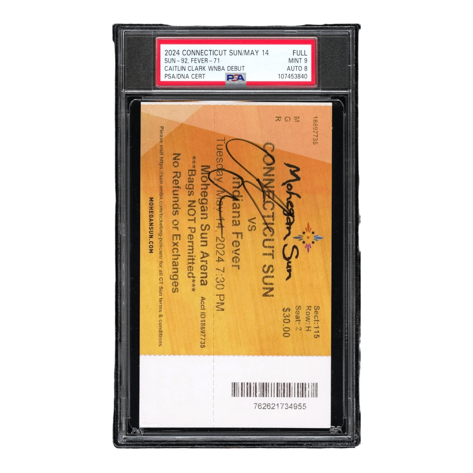 You are purchasing an autographed ticket signed by Caitlin Clark. This ticket is from Clark’s WNBA debut with the Indiana Fever.