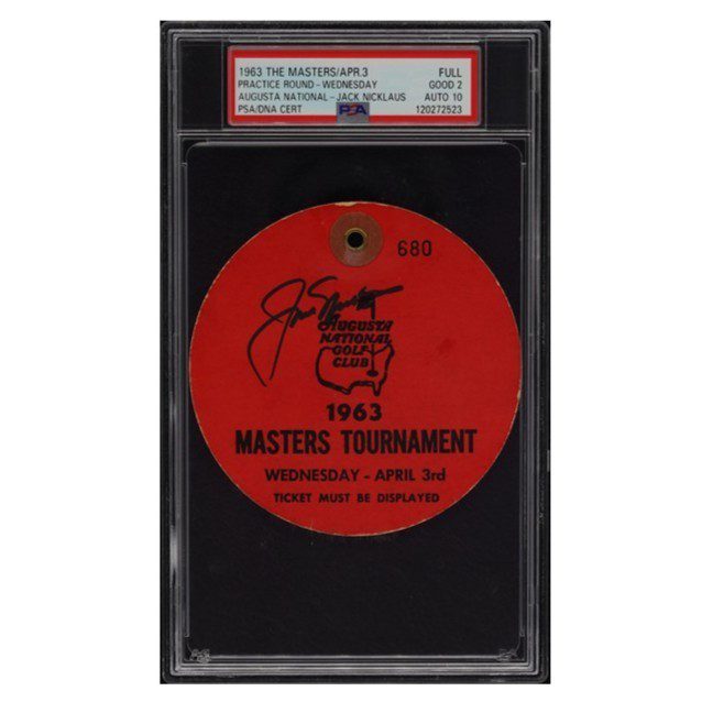 You are purchasing an autographed badge signed by Jack Nicklaus. This badge is from the 1963 Masters Practice Round held on Wednesday April 3, 1963.