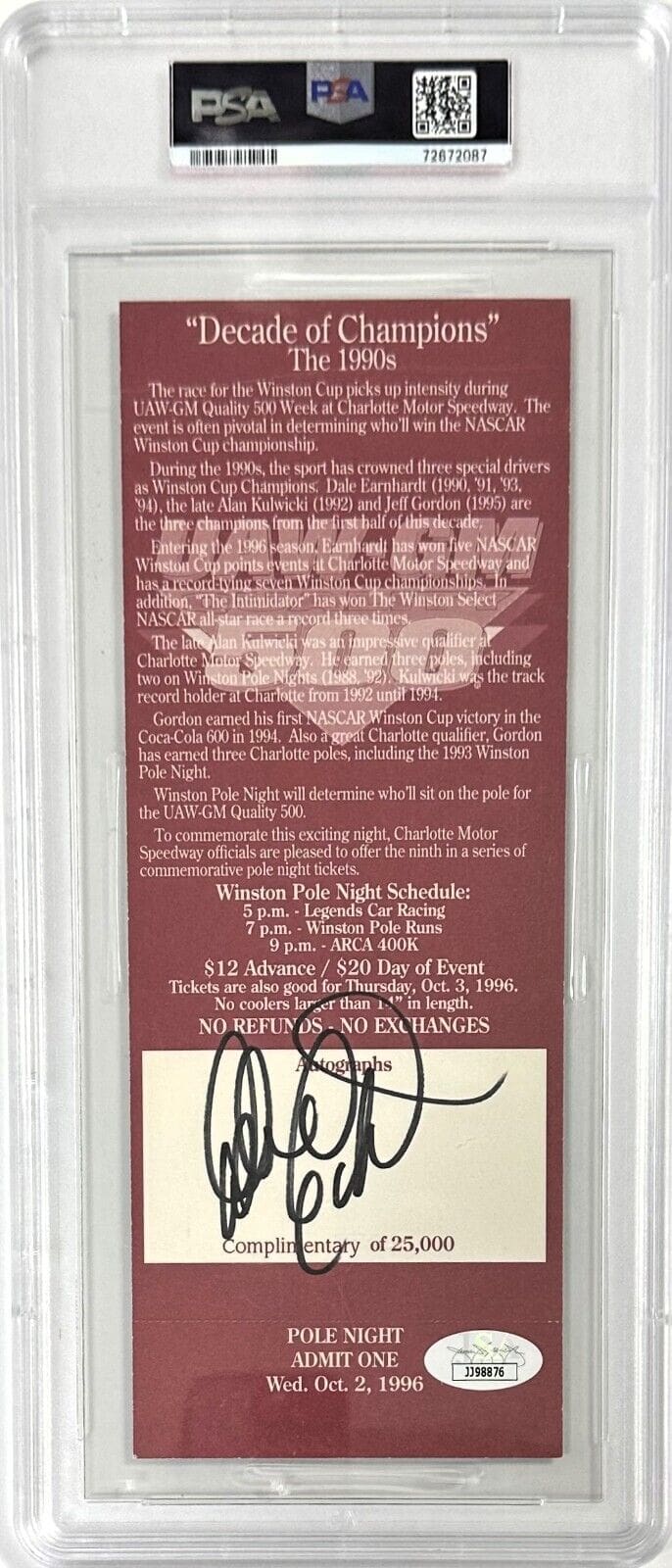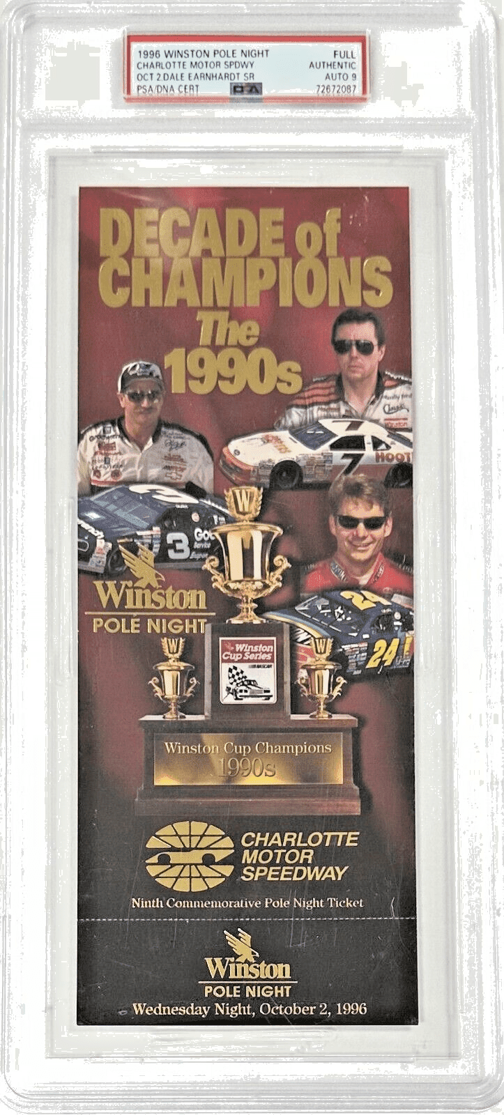 Dale Earnhardt Sr. 1996 Winston Pole Night Signed Ticket PSA/DNA 15334974