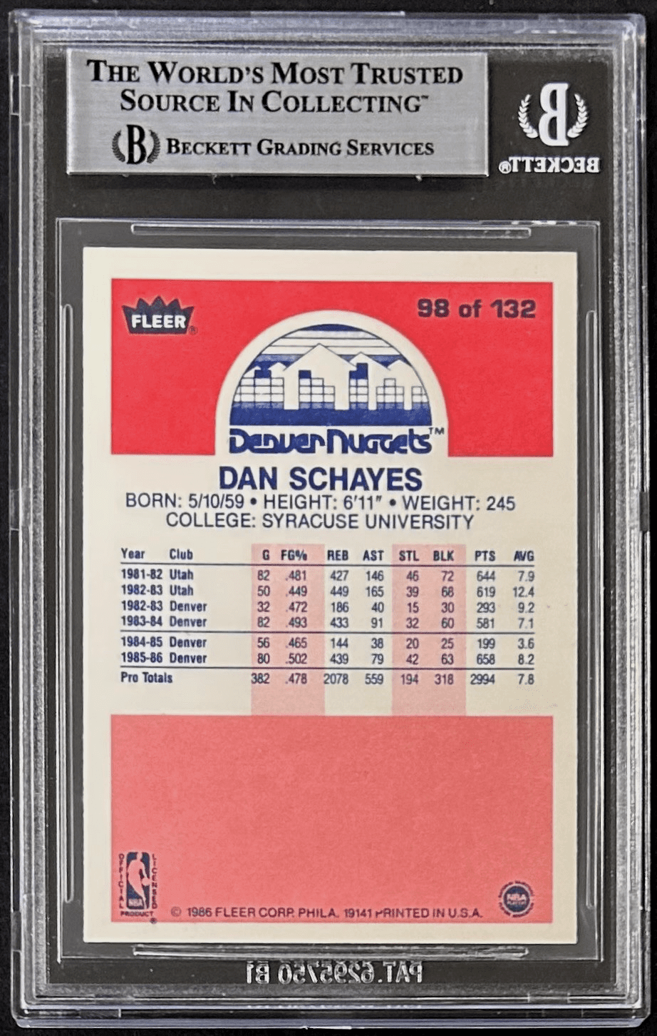 | Player/Athlete | Dan Schayes, Danny Schayes |