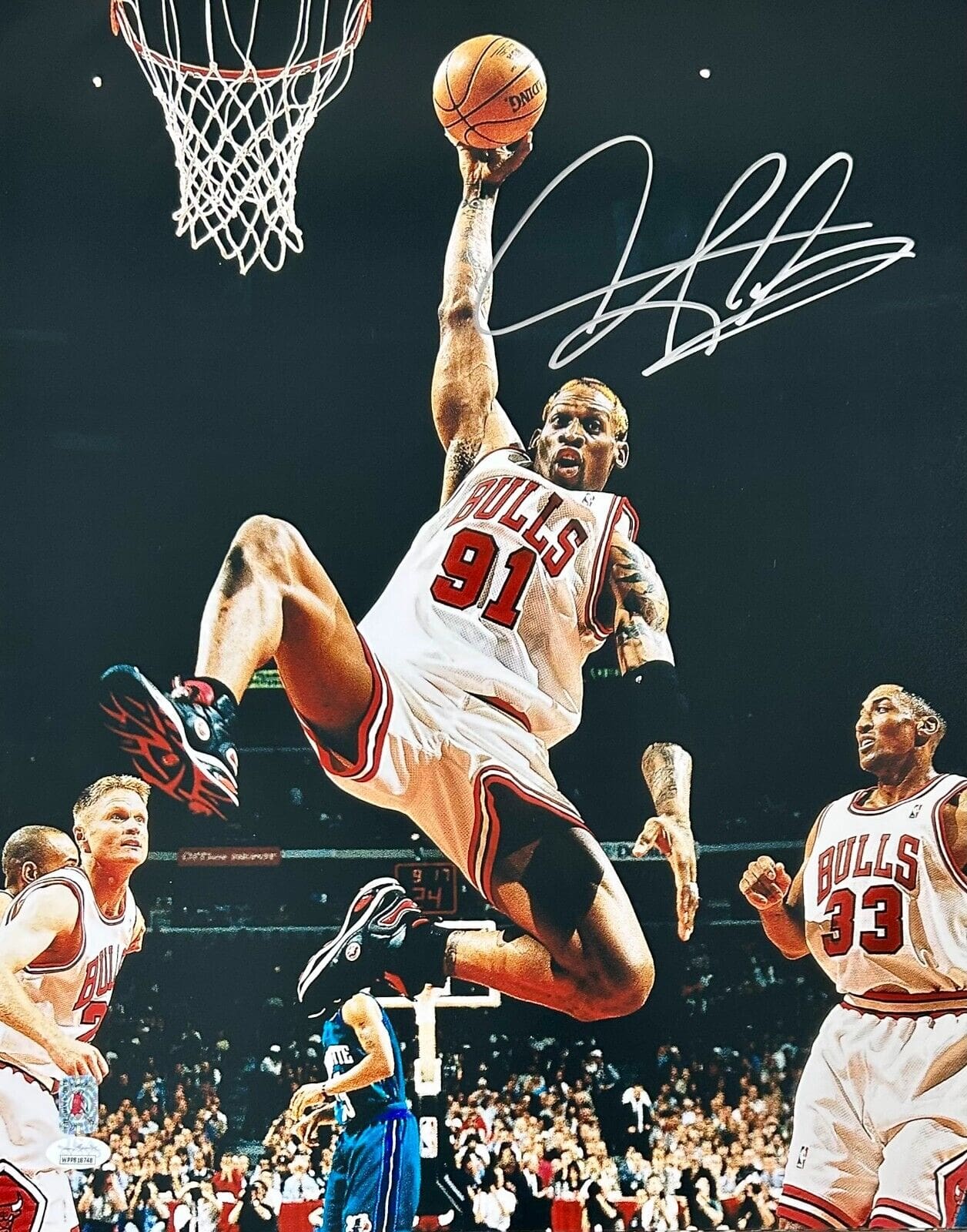 This is a hand autographed photo signed by the person listed above. This photo is 16 inches by 20 inches and is printed on the highest quality photo paper. This item has a James Spence Authentication, which comes with a JSA #’ed tamper proof sticker attached to the item and a matching JSA certificate of authenticity card. You can view this items authentication on the JSA website which shows when and where the item was signed. This item also comes with a Dennis Rodman Exclusive Player hologram attached to the item. All of our items are signed either at a public autograph appearance or a private signing. All of our autographs are 100% Authentic.