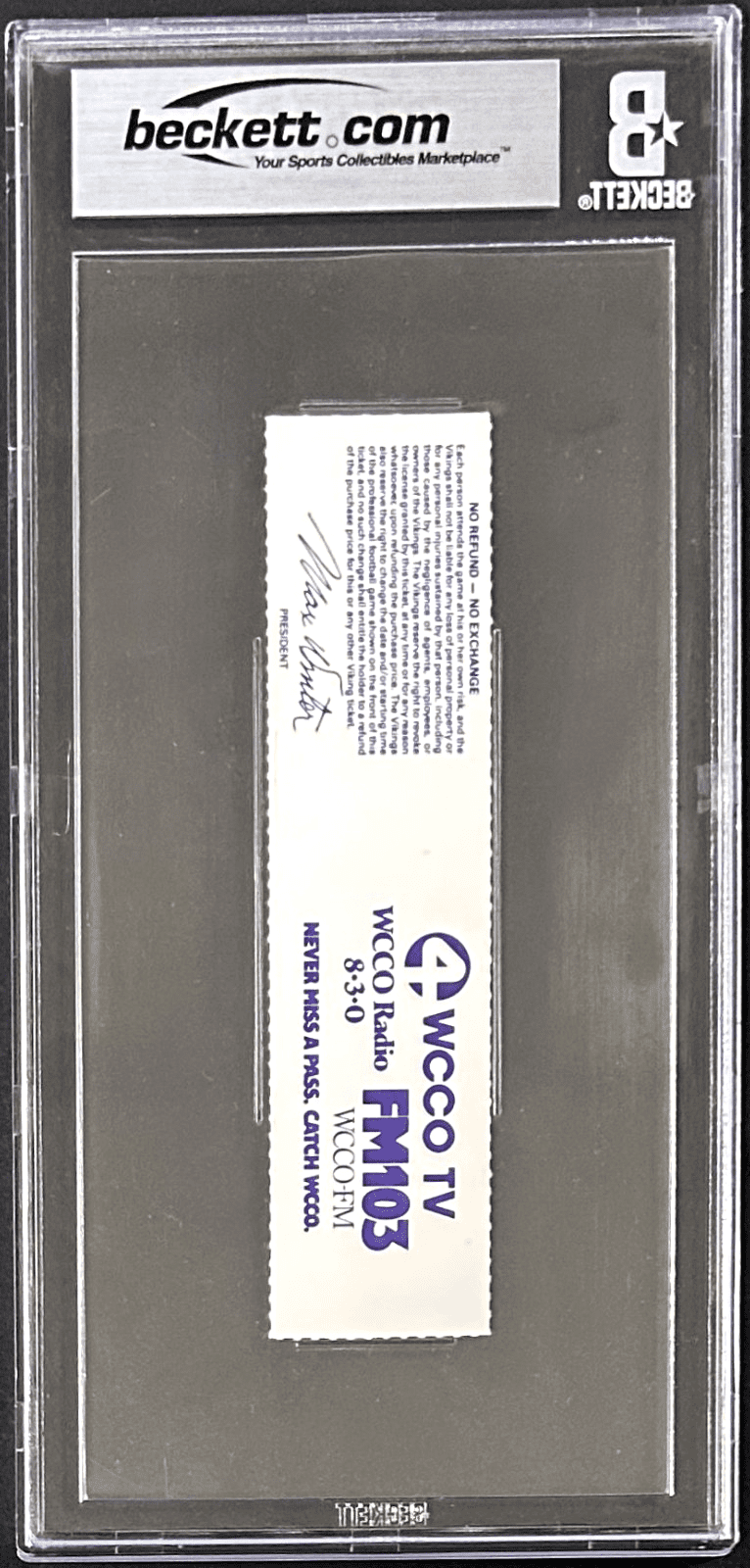 EARL CAMPBELL AUTOGRAPHED OILERS VS VIKINGS FULL TICKET BECKETT AUTO 10 NM-MT 8