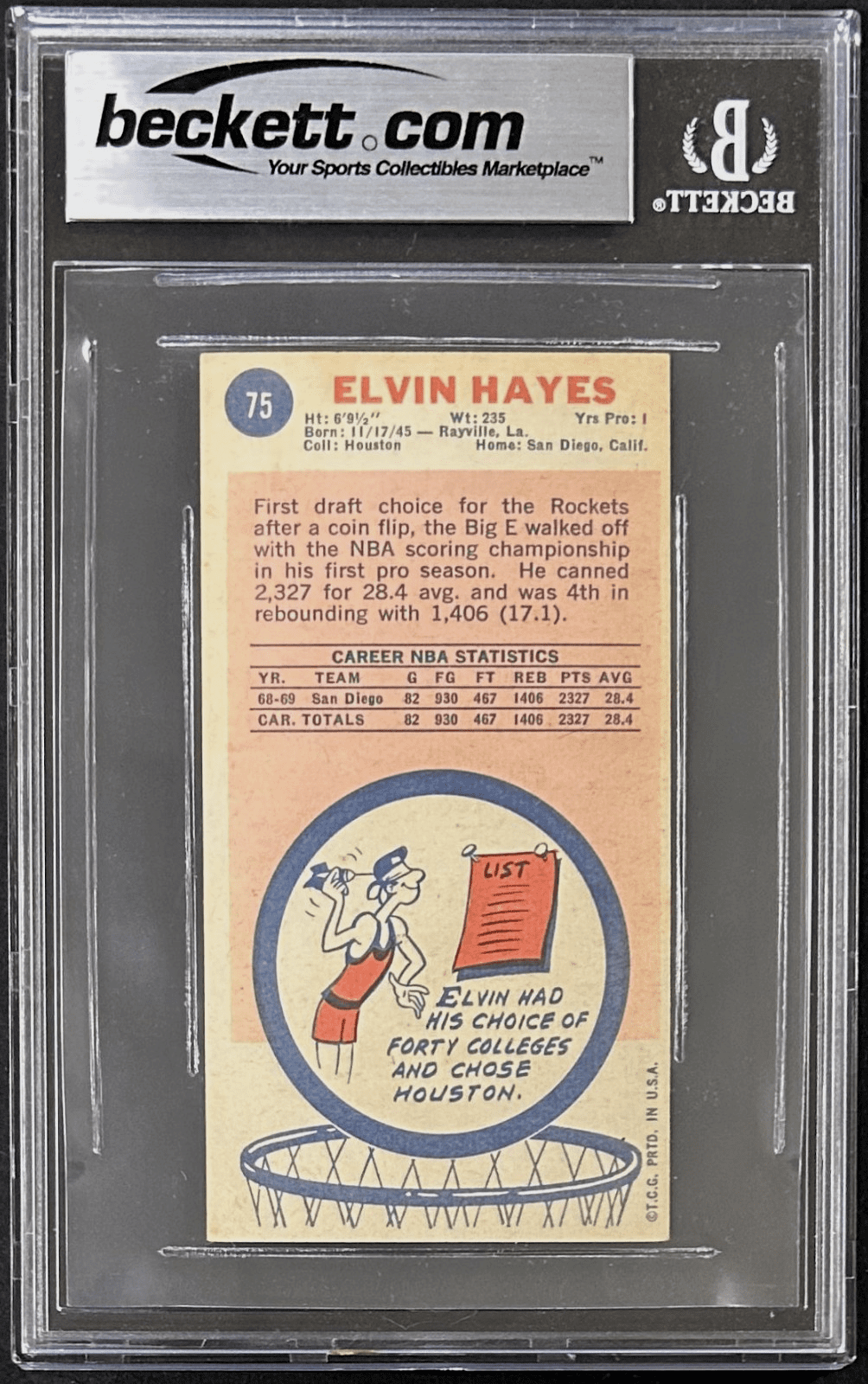 Elvin Hayes Signed 1969-70 Topps Card #75 BAS 15333565 Auto 10 San Diego Rockets