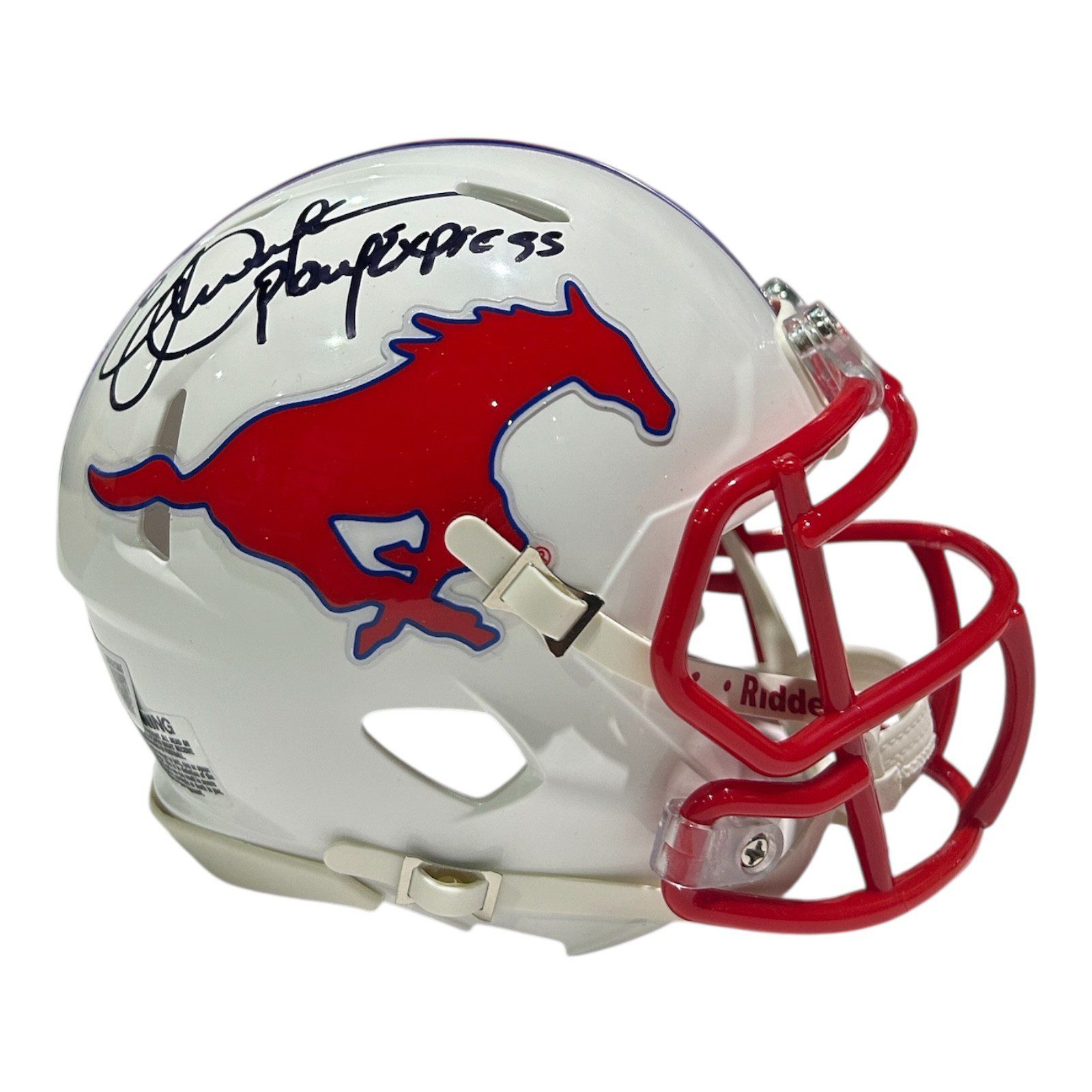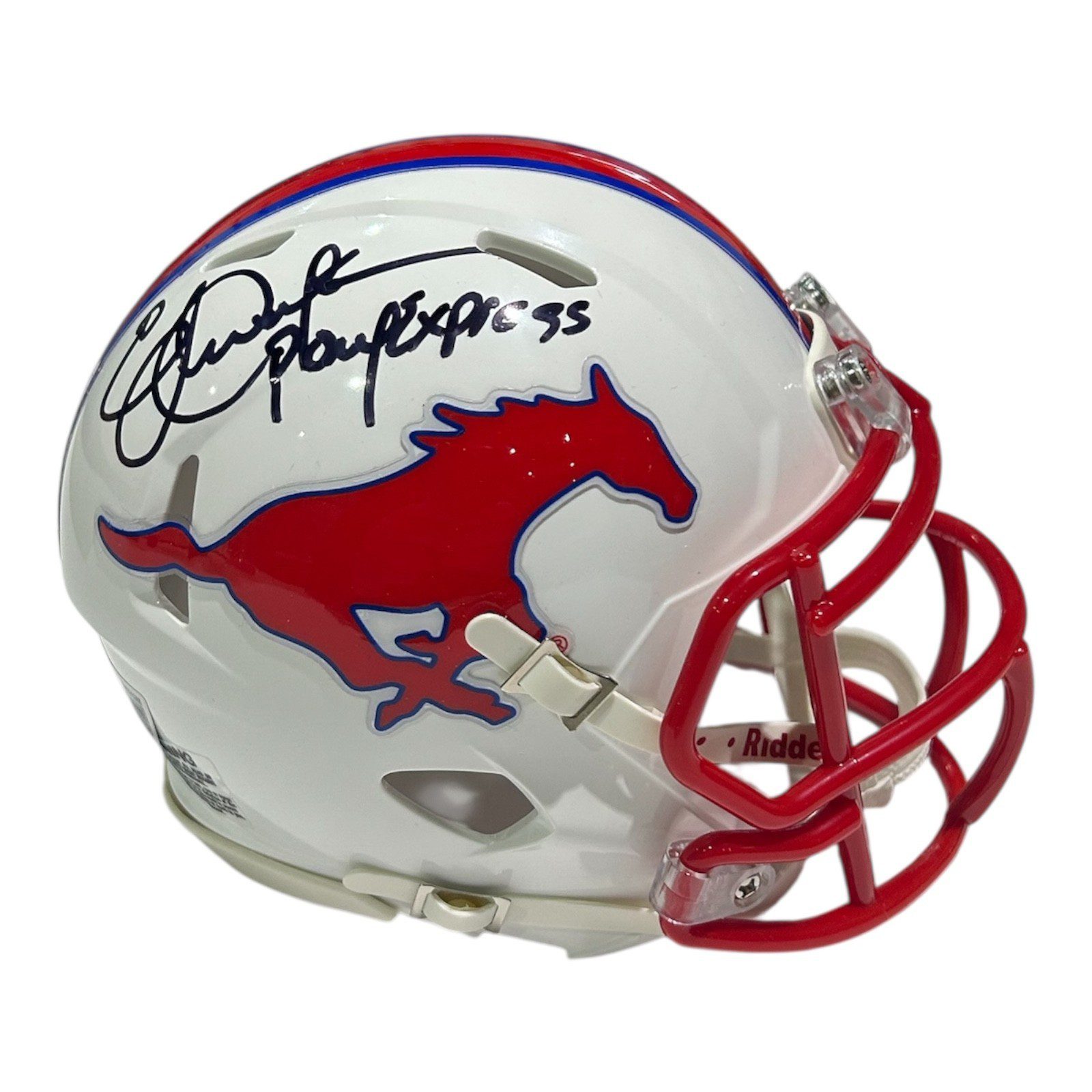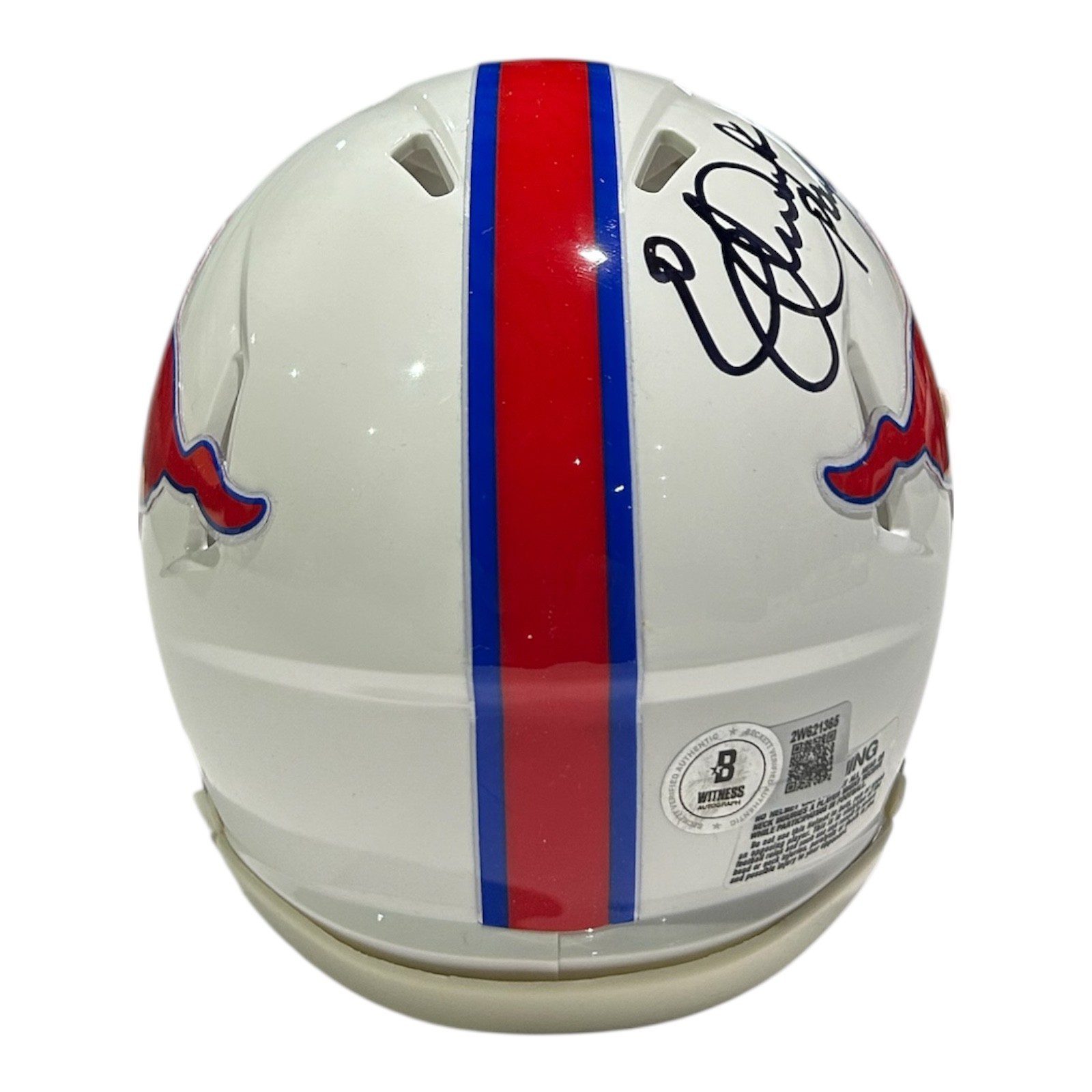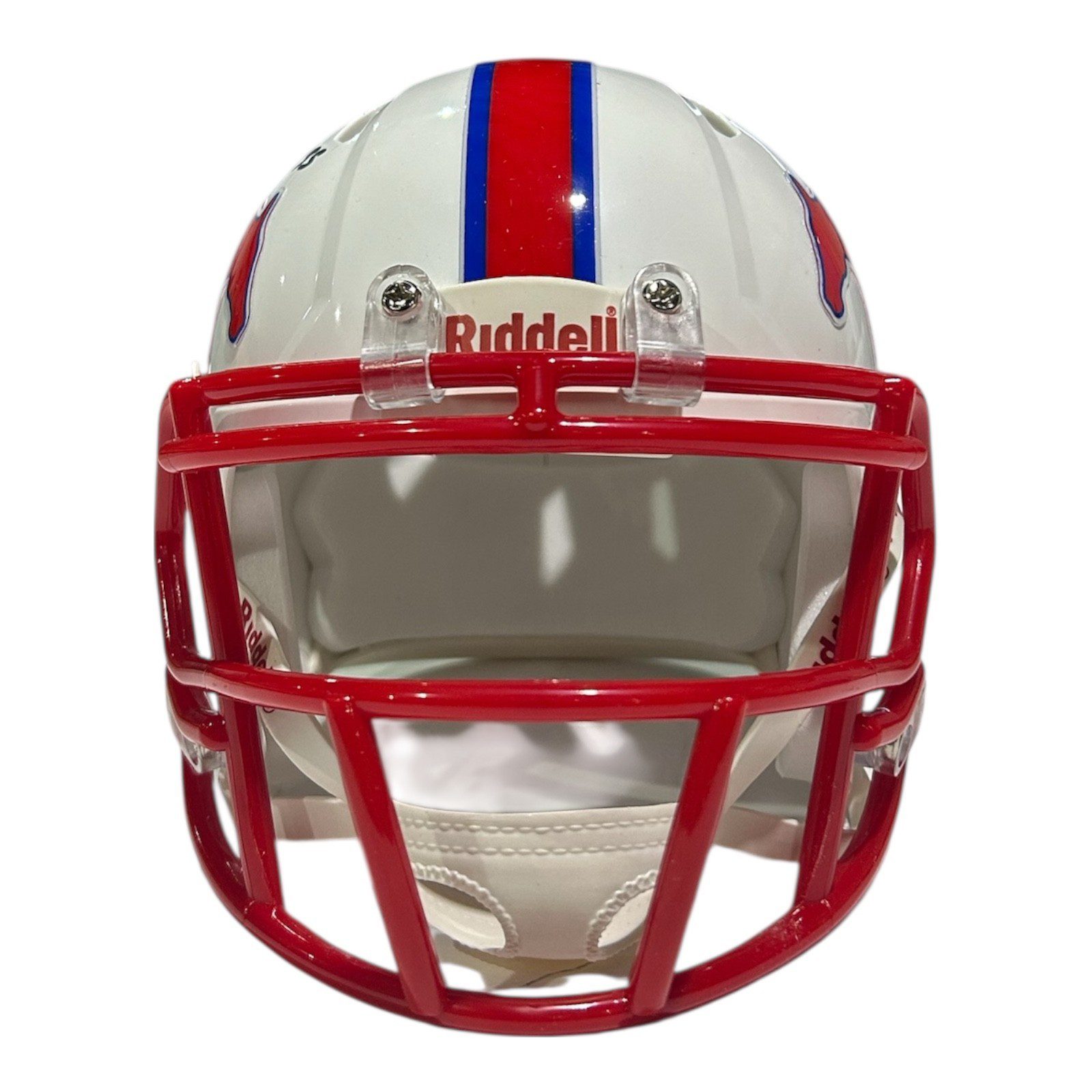 is a hand autographed helmet signed by the above mentioned player. This is a Riddell Replica mini Football Helmet. This item has Beckett