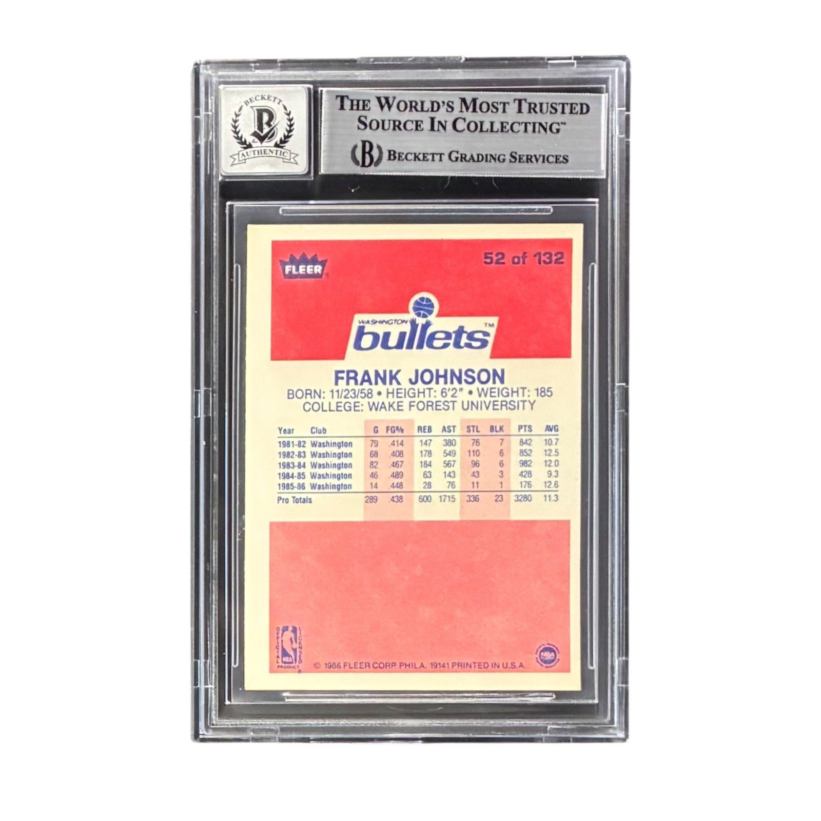FRANK JOHNSON AUTOGRAPHED 1986-87 FLEER CARD #52 BECKETT 17696327 Auto 10