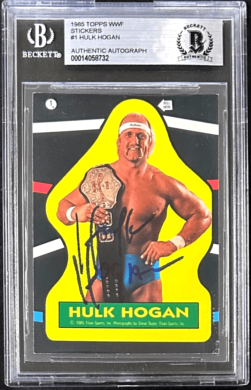 Hulk Hogan Signed 1985 Topps WWF Sticker Card #1 Beckett 14058732