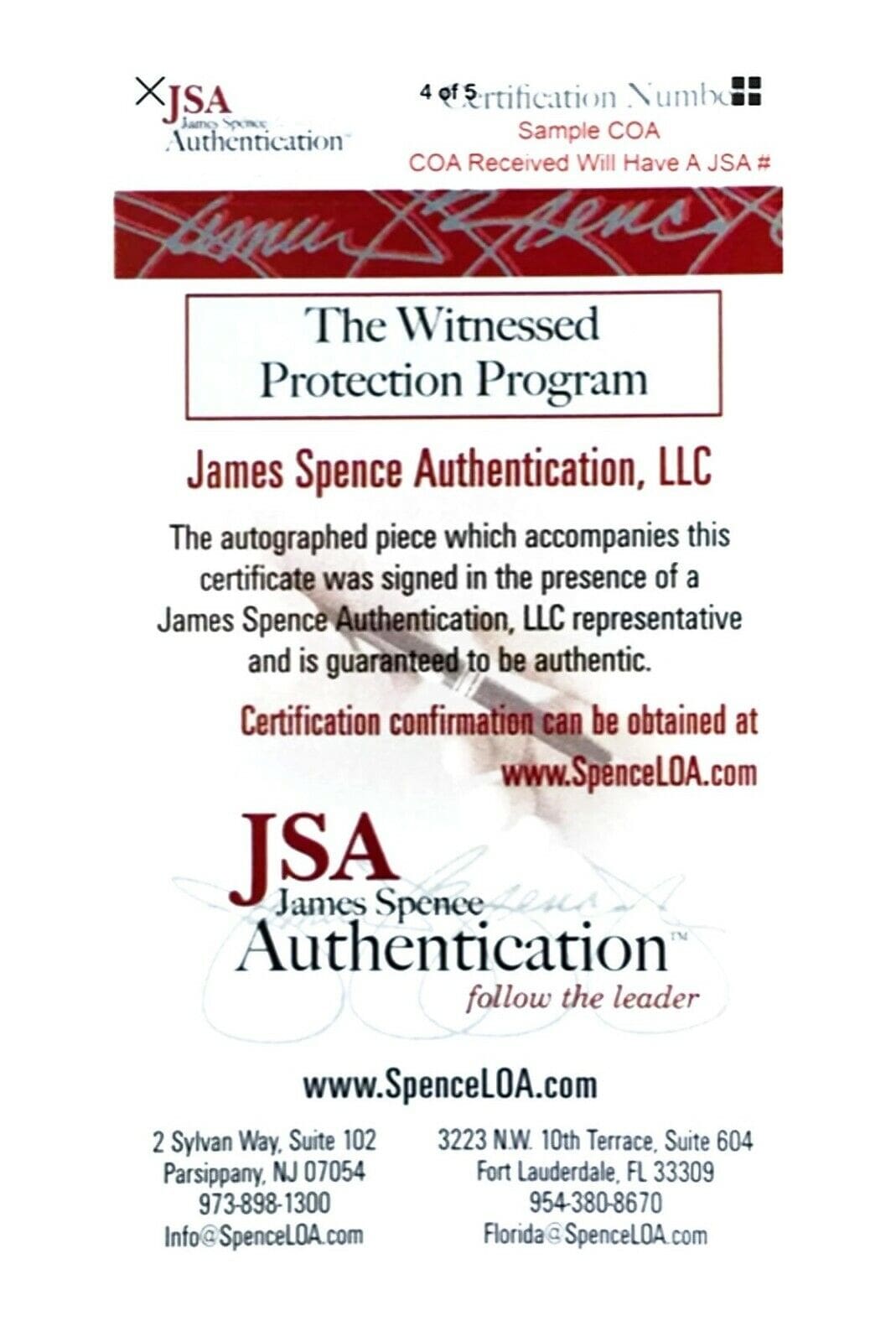 This is a hand autographed jersey signed by the person listed above. The frame measures 42×34. This item has a JSA authenticity, which comes with a JSA #’ed and matching JSA card. You can view this items authentication on the JSA website. All of our autographs are 100% Authentic.