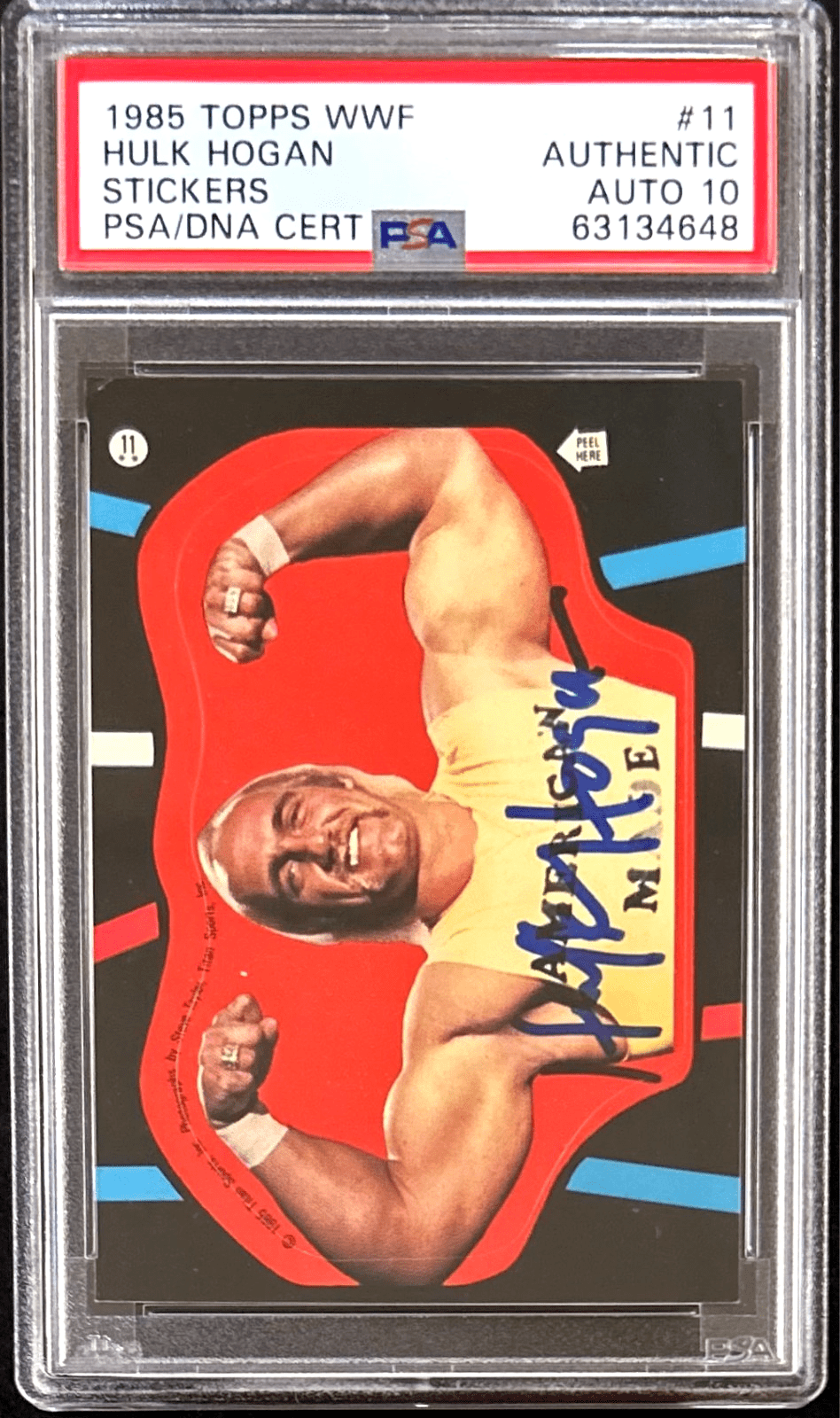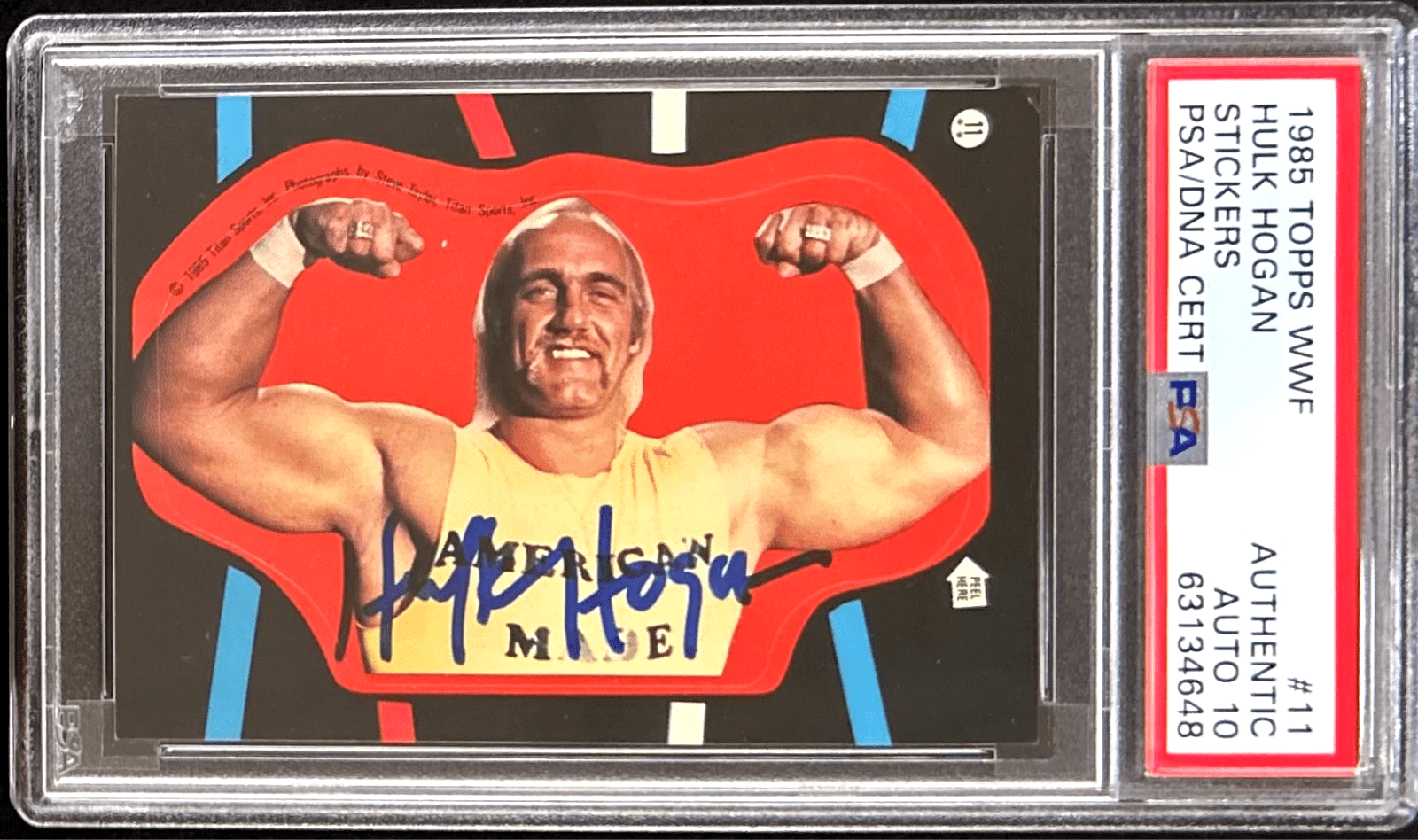Hulk Hogan Signed 1985 Topps WWF Sticker Card #11 PSA/DNA 63134648 Auto 10