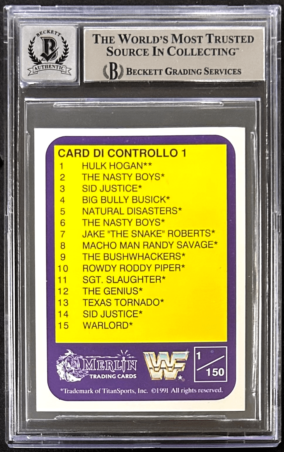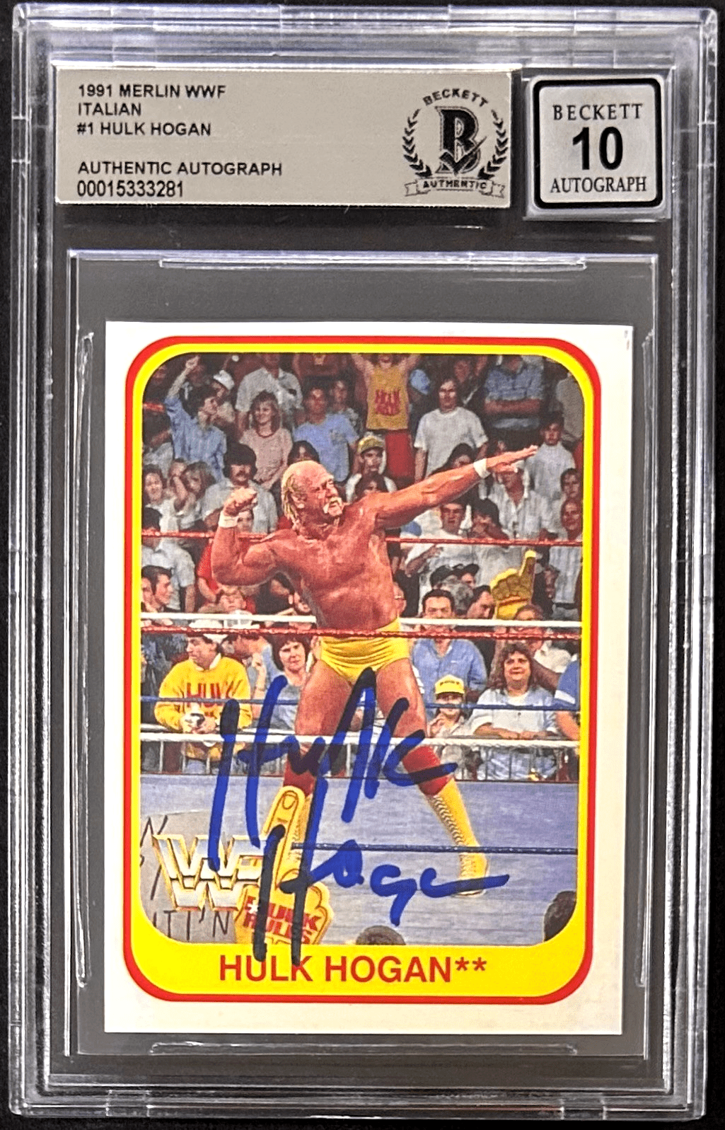 Hulk Hogan Signed 1991 Merlin Italian WWF Card #1 Beckett 15333281 Auto 10