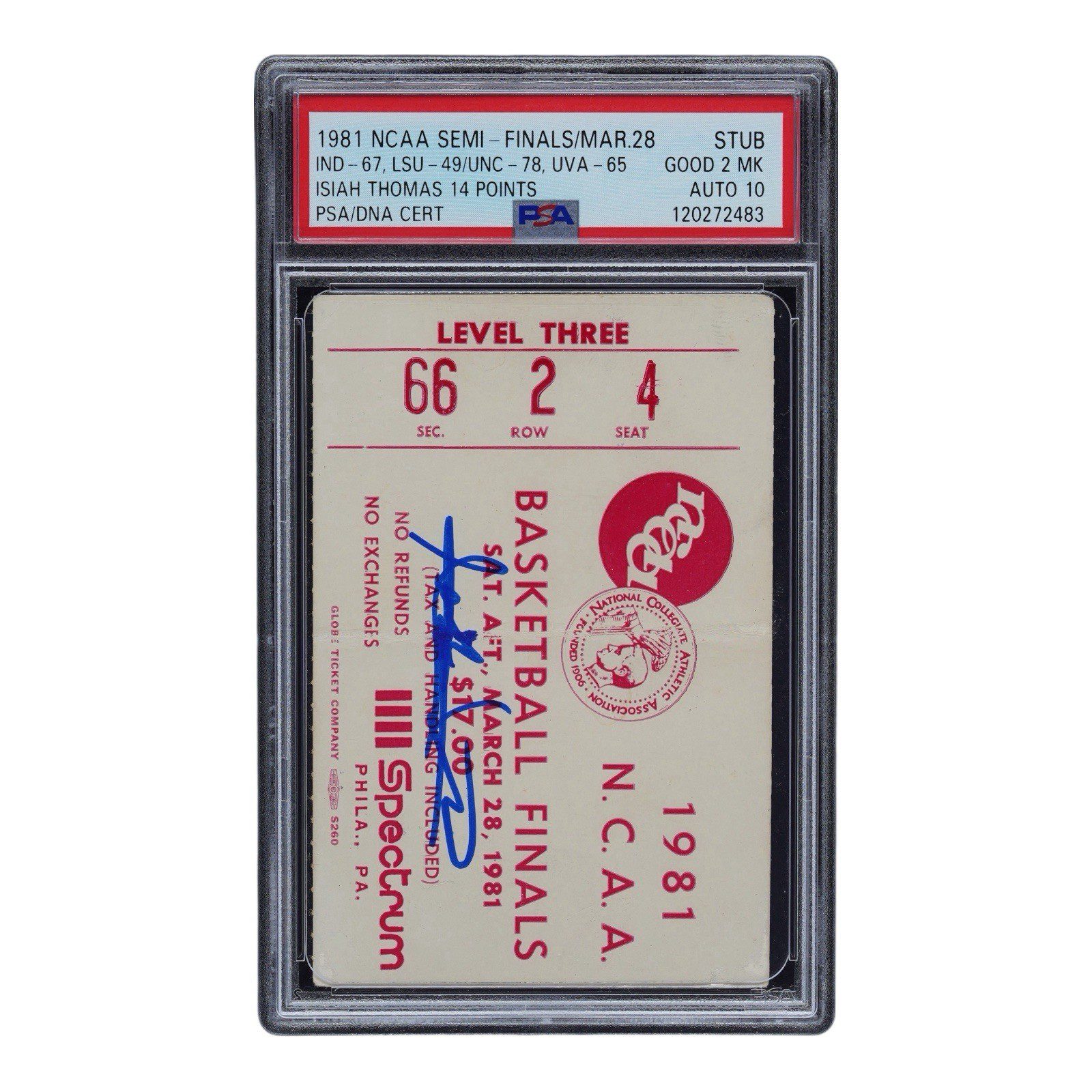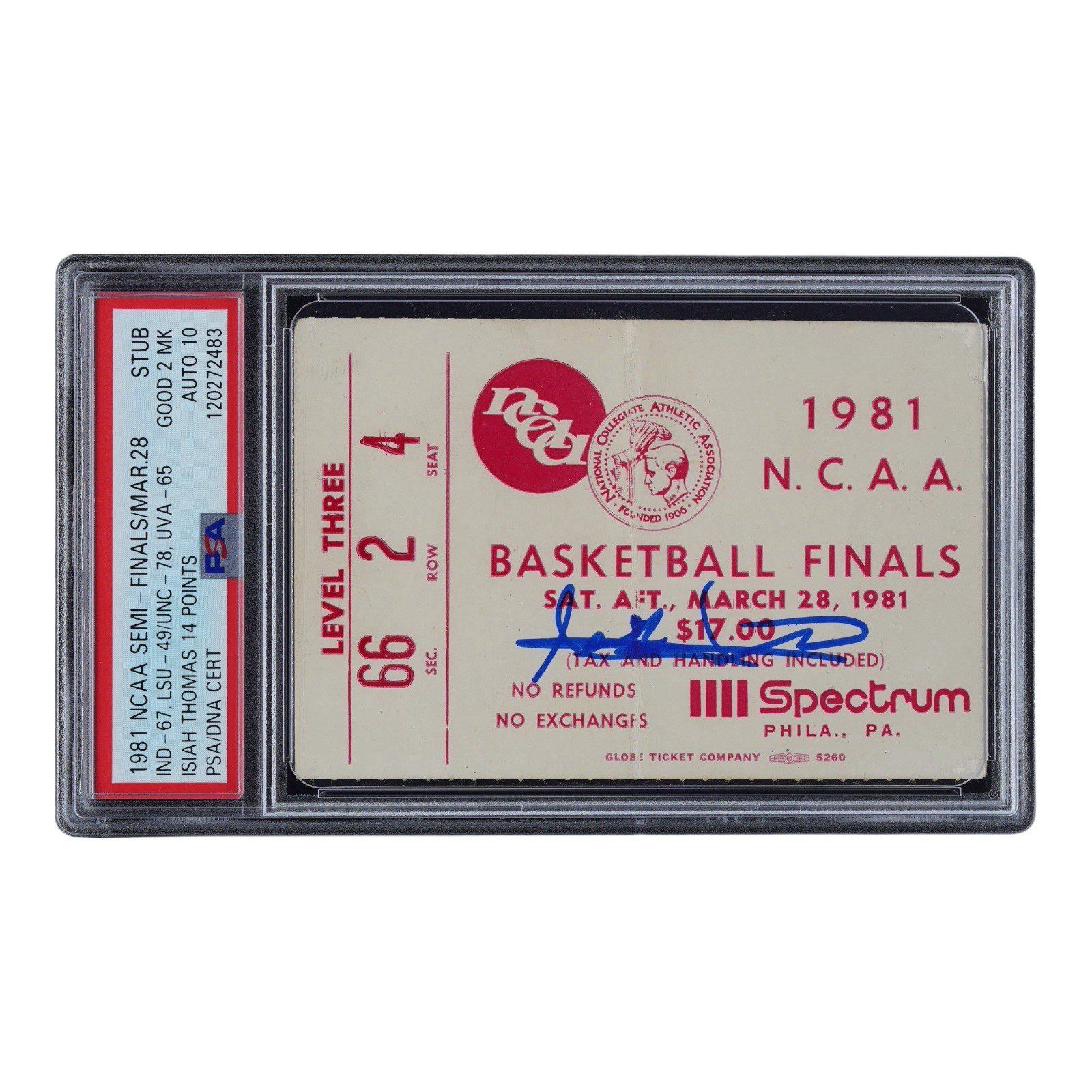 You are purchasing an autographed ticket signed by Isiah Thomas. This ticket is from the 1981 NCAA Semi-Finals between Indiana and LSU. In this game Thomas scored 14 points.