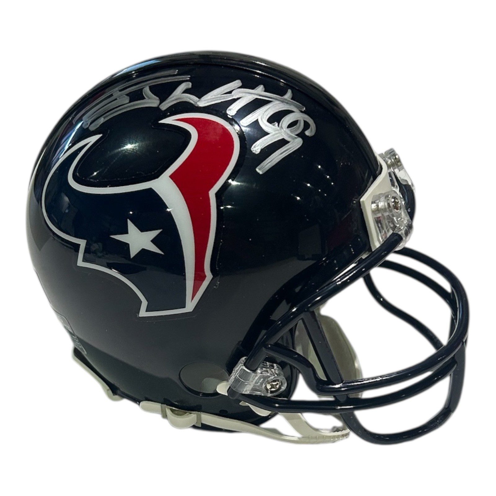 is a hand autographed helmet signed by the above mentioned player. This is a Riddell Replica mini Football Helmet. This item has Beckett