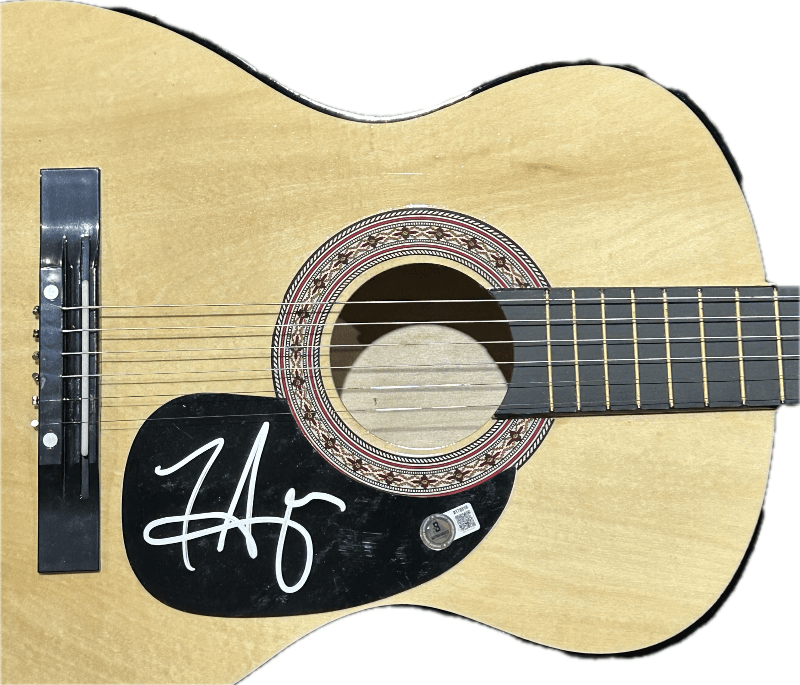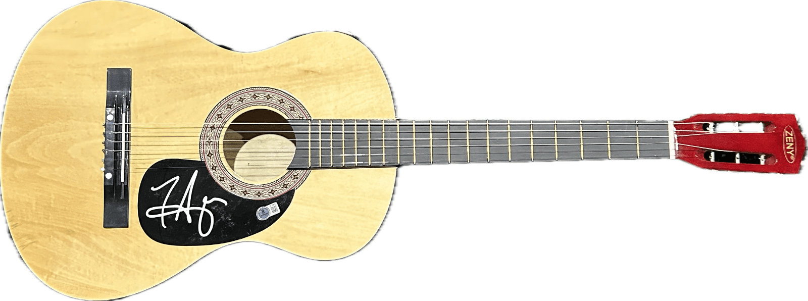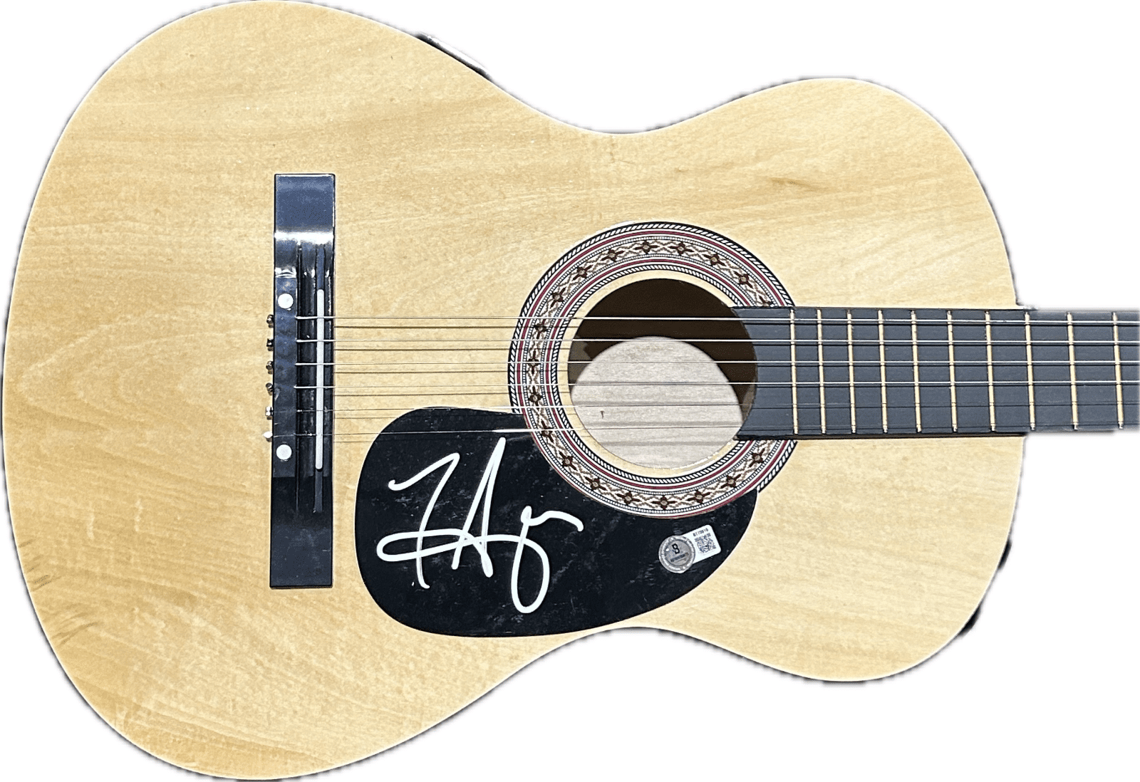 This isĀ anĀ acoustic guitar measures approximately 38″ in length and has been hand-signed by the person mentioned above.Ā This is a 38-inchĀ natural acousticĀ guitar;Ā this guitar is a display guitar. It is a lower-tier version and is not the same quality as one that a musician would play.Ā This item has aĀ Beckett Authentication tamper proofĀ hologram attached to the item. You can view this items authenticationĀ on theĀ Beckett website.Ā All of our autographs are 100% Authentic.Ā