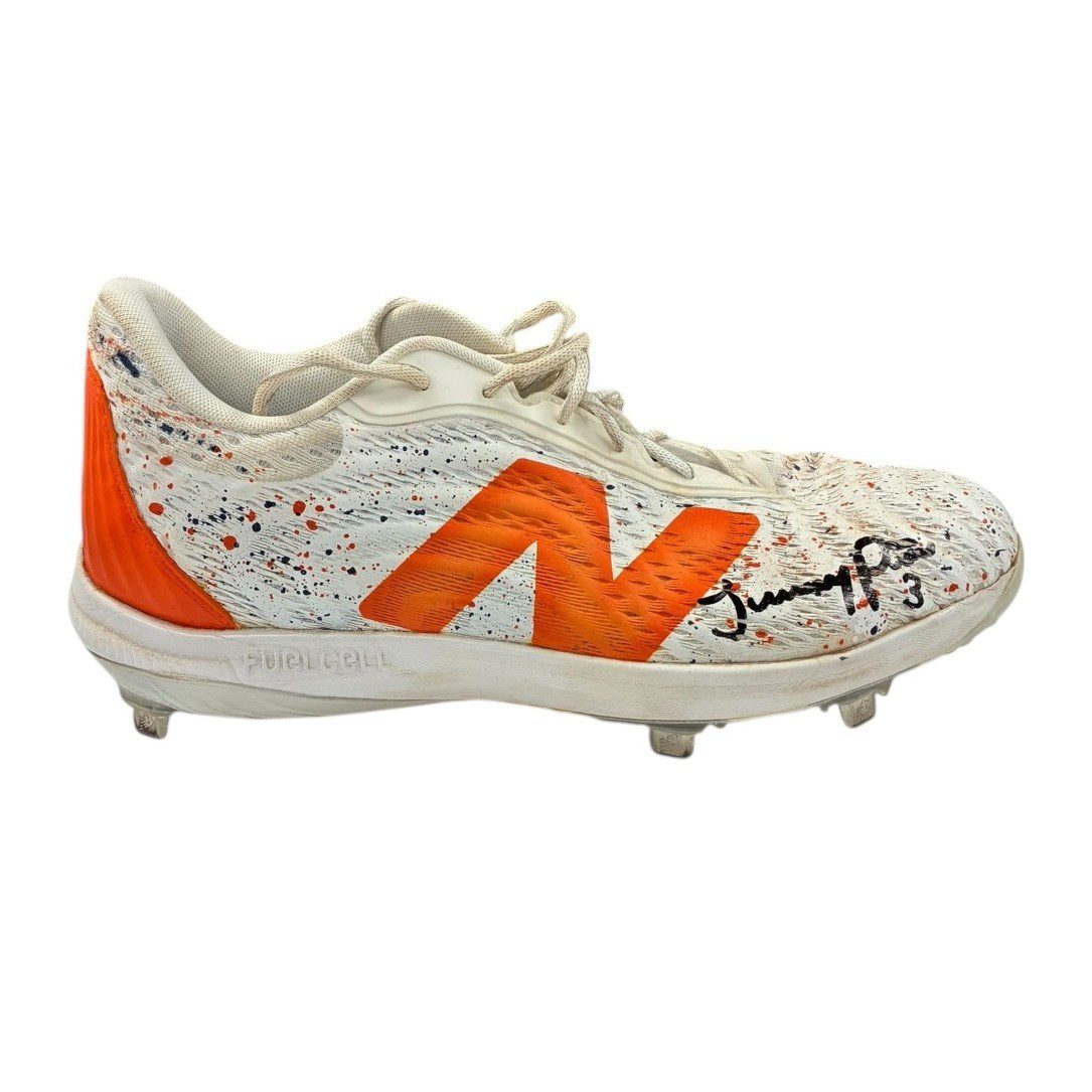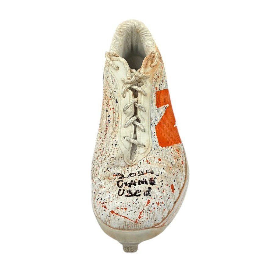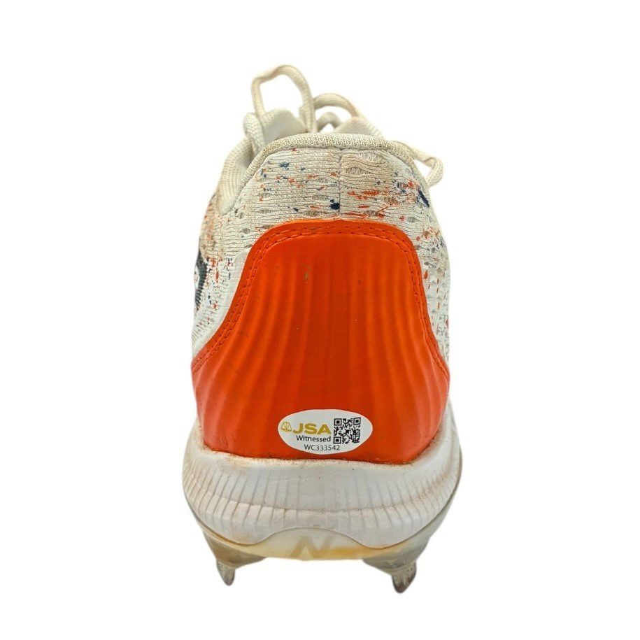 These are game used baseball cleats used by Jeremy Pena in 2024. These baseball cleats were used by Mr. Pena during the 2024 MLB Season. This item is custom made for Mr. Pena and are size 11. This item comes with the inscription: 2024 Game Used. This item has JSA Authentication sticker, which comes with a JSA tamper proof sticker attached to the item. This items authentication can be viewed on the JSA website.