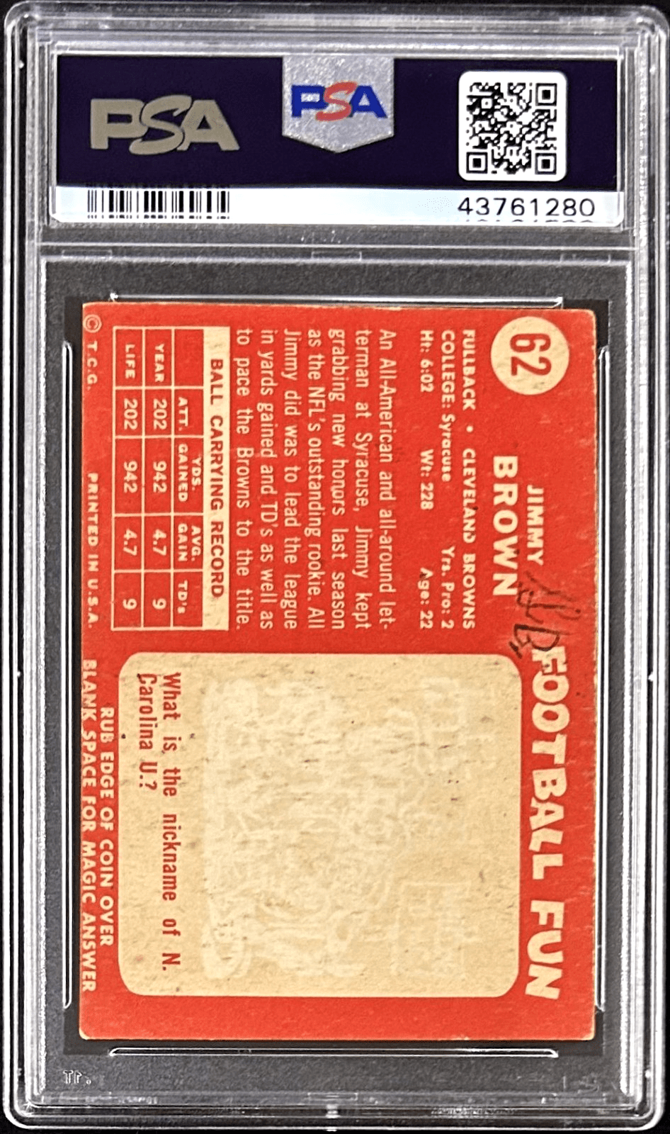 Jimmy “Jim” Brown Signed Autographed 1958 Topps Rookie Card #62 PSA/DNA 43761280