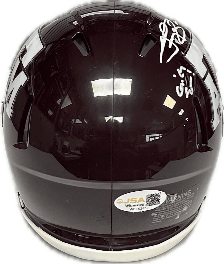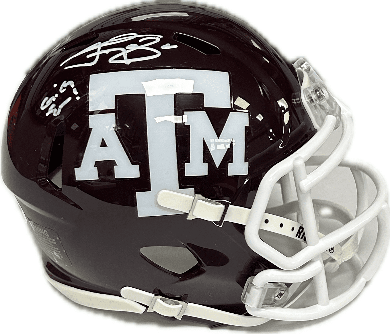 is a hand autographed helmet signed by the above mentioned player. This item comes with the inscription: GiG EM!. This is a Riddell Replica mini Football Helmet. This item has JSA
