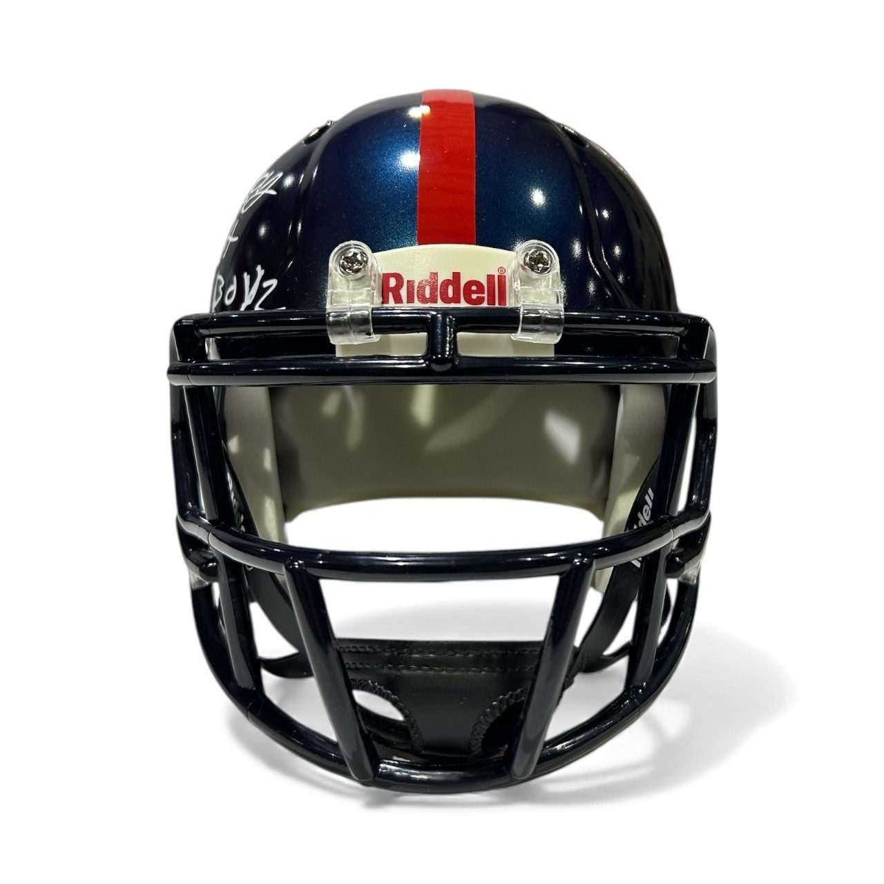 is a hand autographed helmet signed by the above mentioned player. This item comes with the inscription: Belt Boyz. This is a Riddell Replica mini Football Helmet. This item has JSA