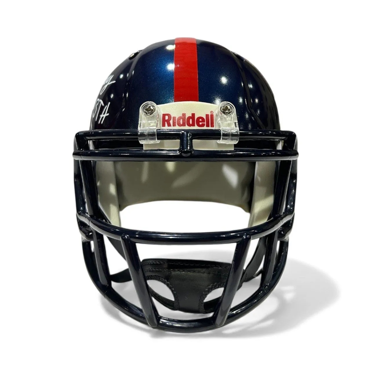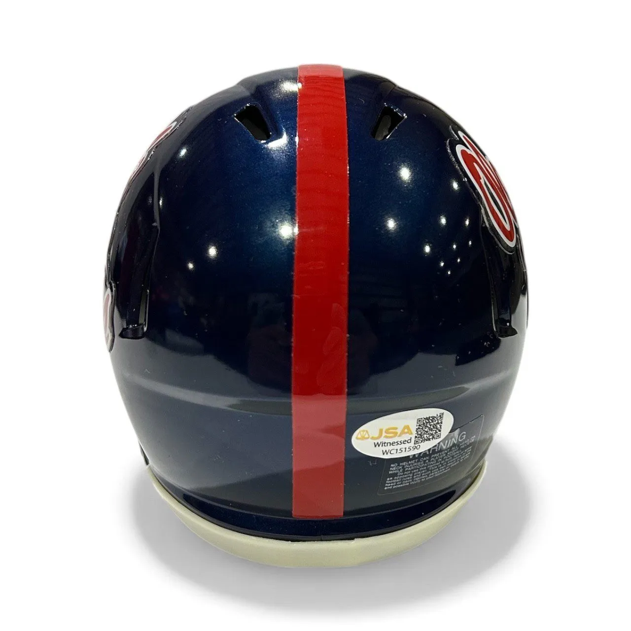 is a hand autographed helmet signed by the above mentioned player. This item comes with the inscription: BTA. This is a Riddell Replica mini Football Helmet. This item has JSA