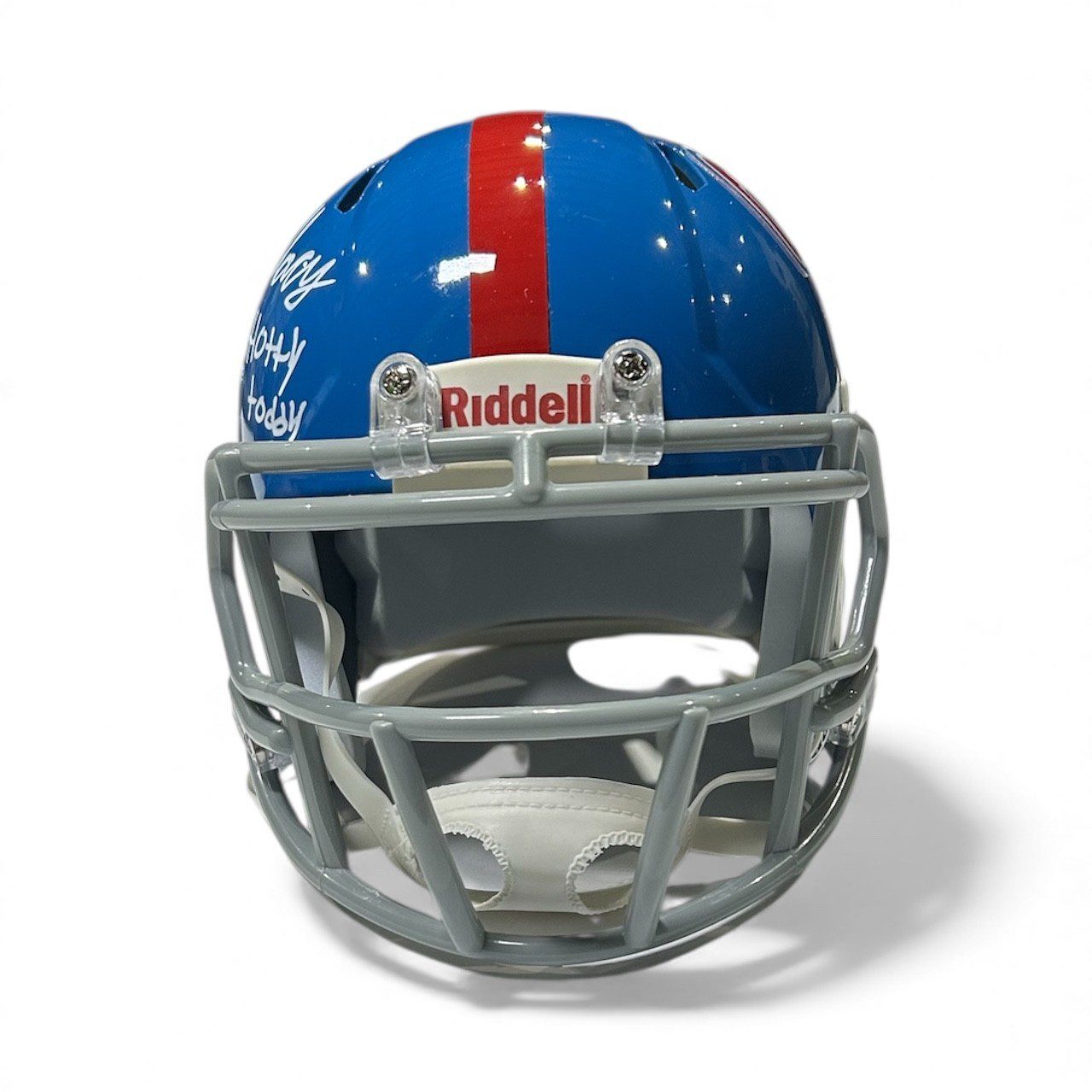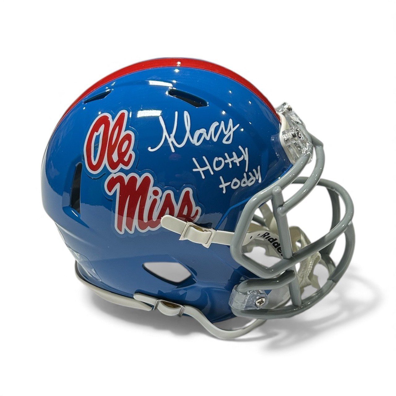 the above mentioned player. This item comes with the inscription: Hotty Toddy. This is a Riddell Replica mini Football Helmet. This item has JSA
