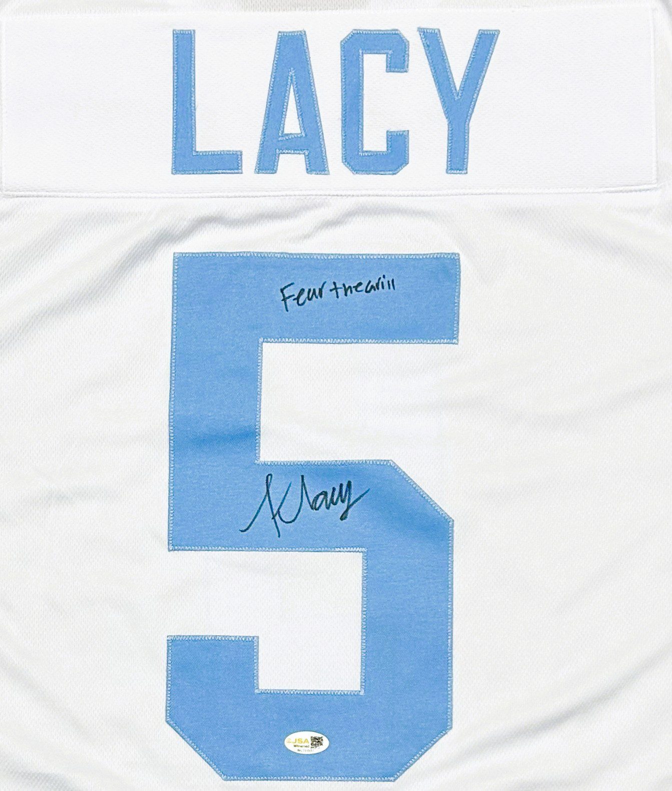 This is a hand autographed jersey signed by the person listed above. THIS IS NOT A NCAA JERSEY. THIS HAS NO TAGS, NO LOGOS, & NO EMBLEMS. This is a custom made; non name brand; authentic style jersey with all stitched letters and numbers. This jersey comes with the inscription: Fear The Grill. All jerseys are size XL and are brand new, never worn. This item has a JSA Authentication tamper proof sticker attached to the item. You can view this items authentication on the JSA website. All of our autographs are 100% Authentic.