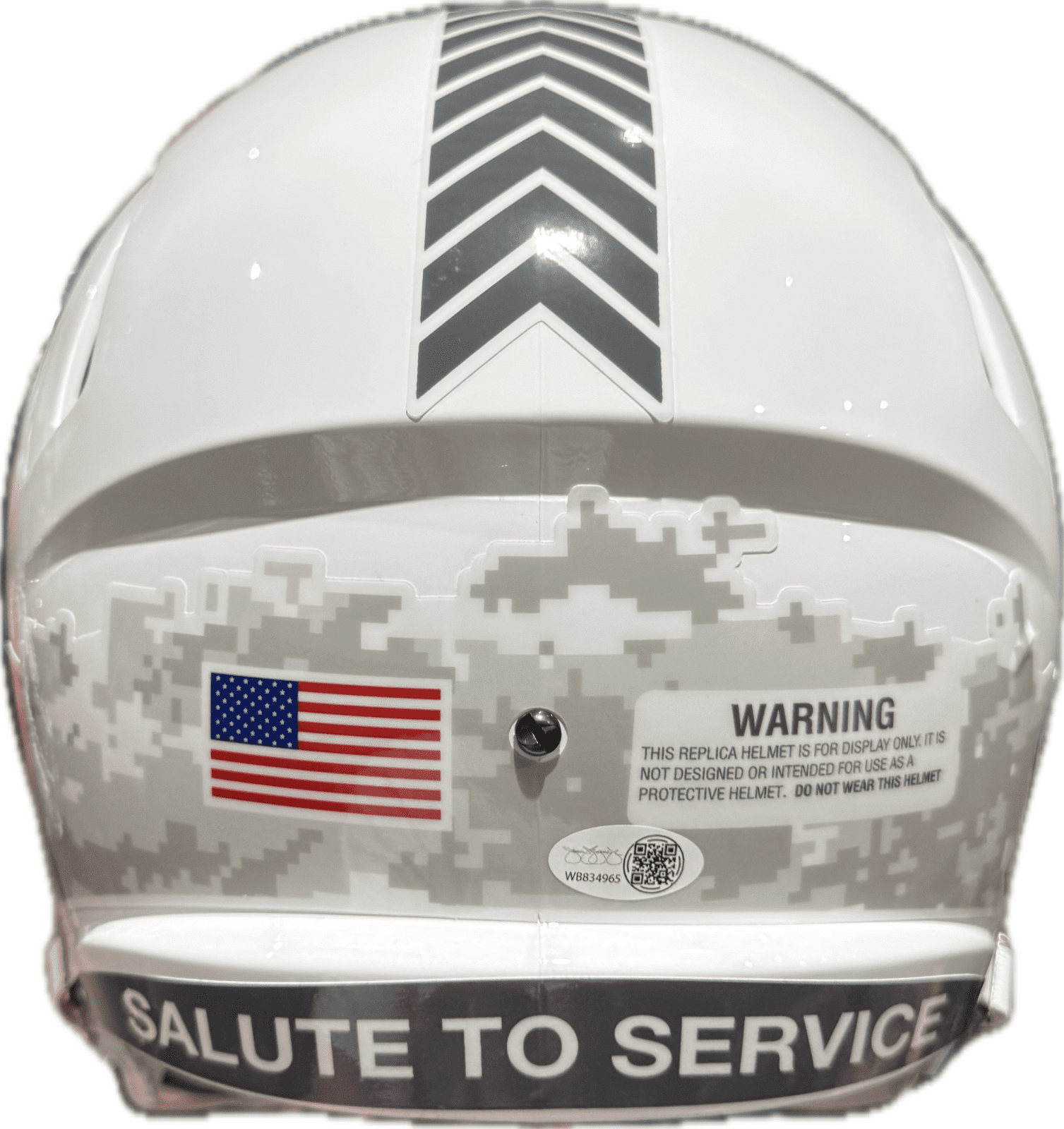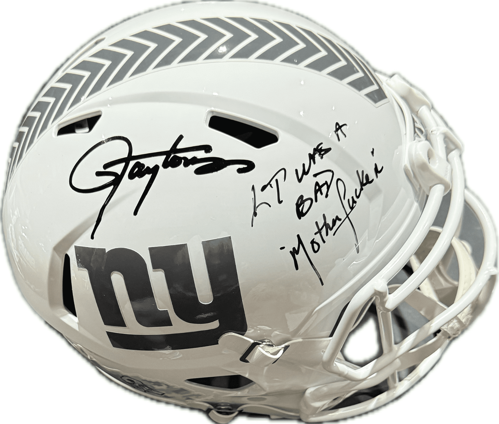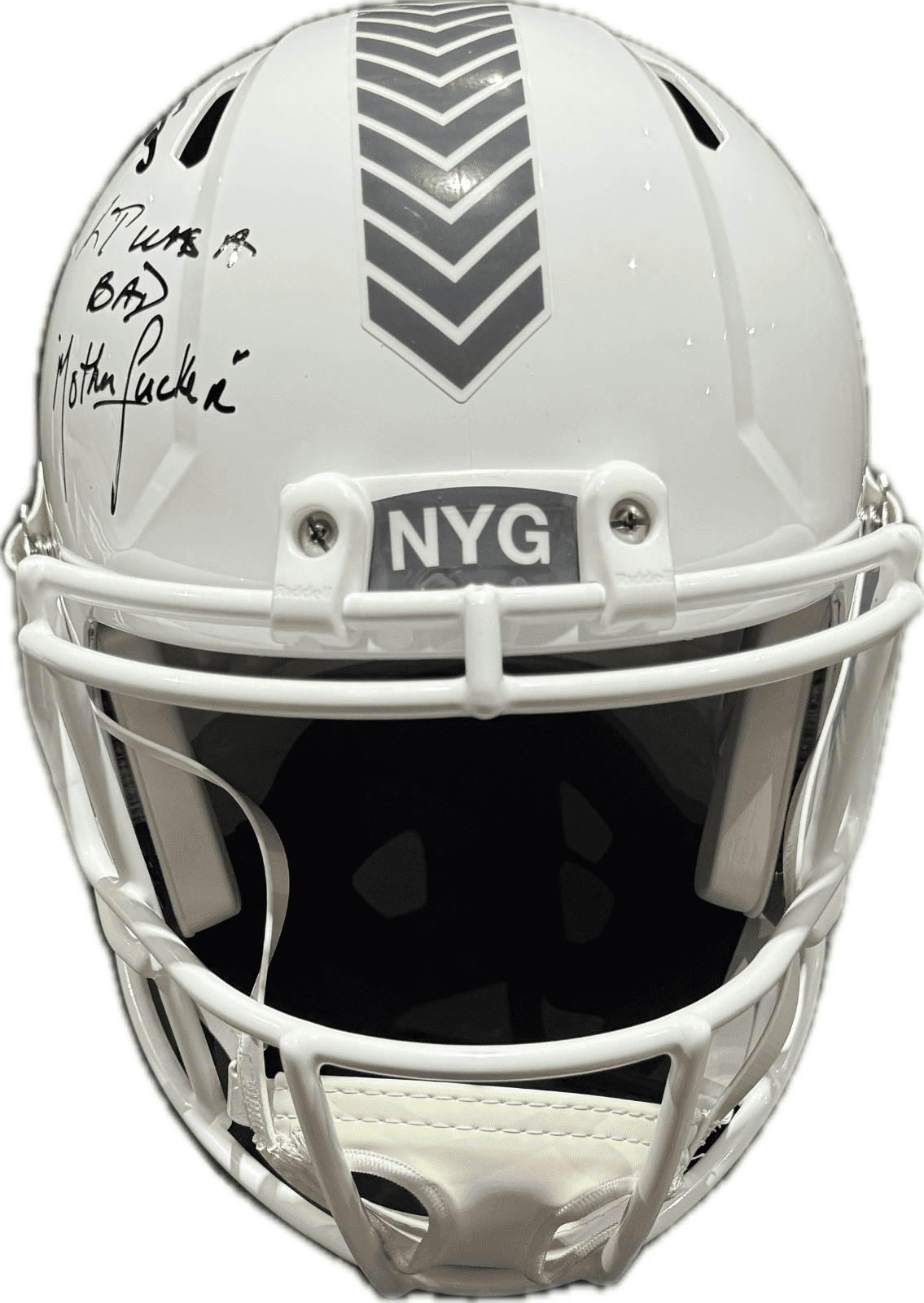 This is a hand autographed full size replica Salute to Service helmet signed by the person listed above. This item comes with the inscription: “LT was a bad Mofo” This is a Riddell Full Size Speed Helmet. This item has a JSA Authentication tamper proof sticker attached to the item. You can view this items authentication on the JSA website which shows when and where the item was signed. All of our items are signed either at a public autograph appearance or a private signing. All of our autographs are 100% Authentic.