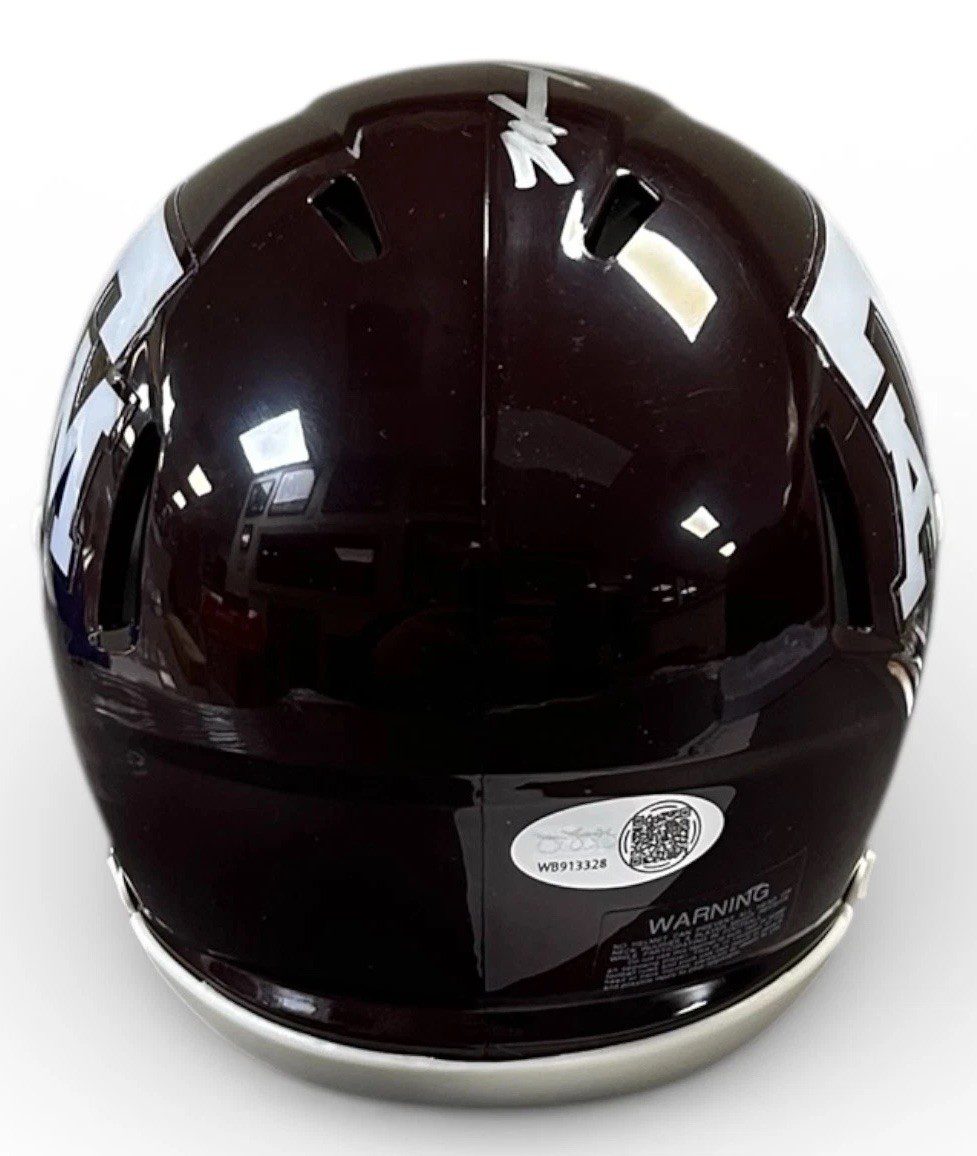 is a hand autographed helmet signed by the above mentioned player. This is a Riddell Replica mini Football Helmet. This item has JSA