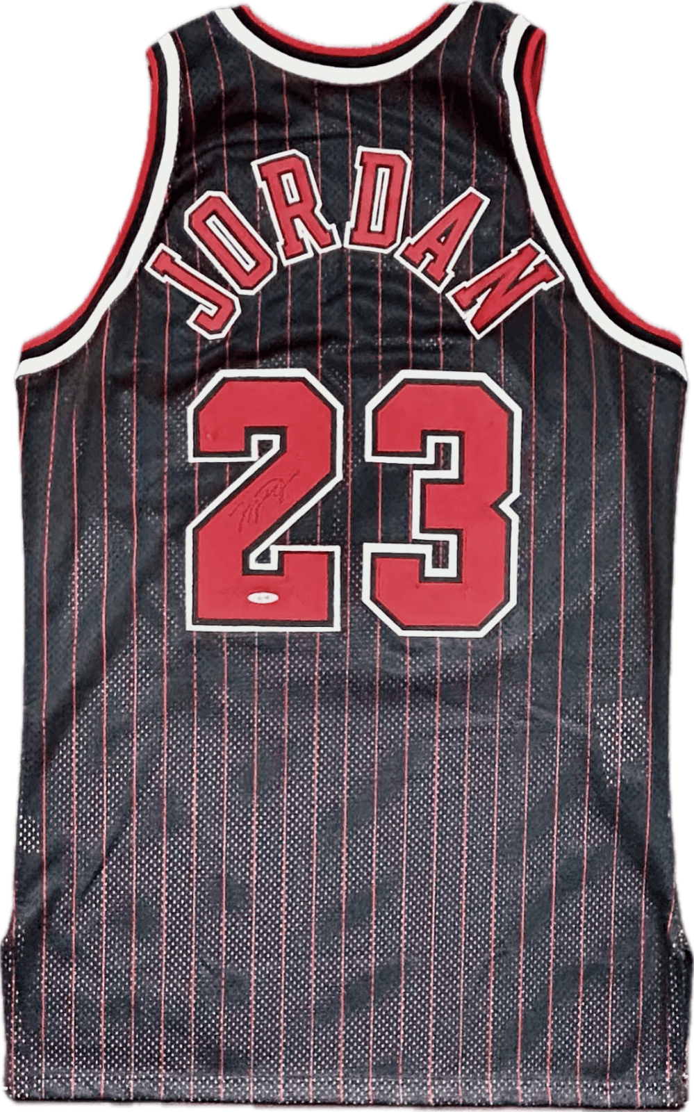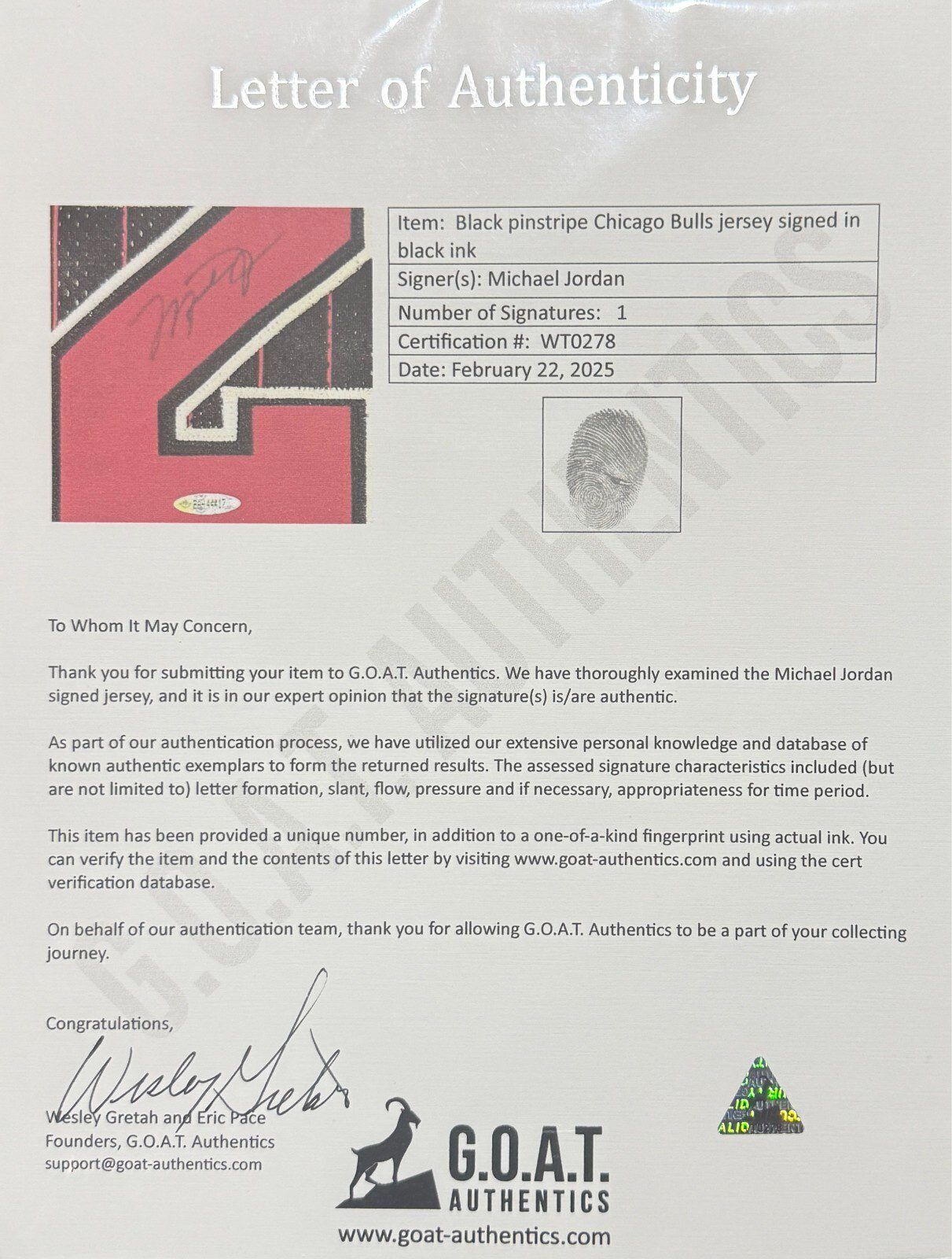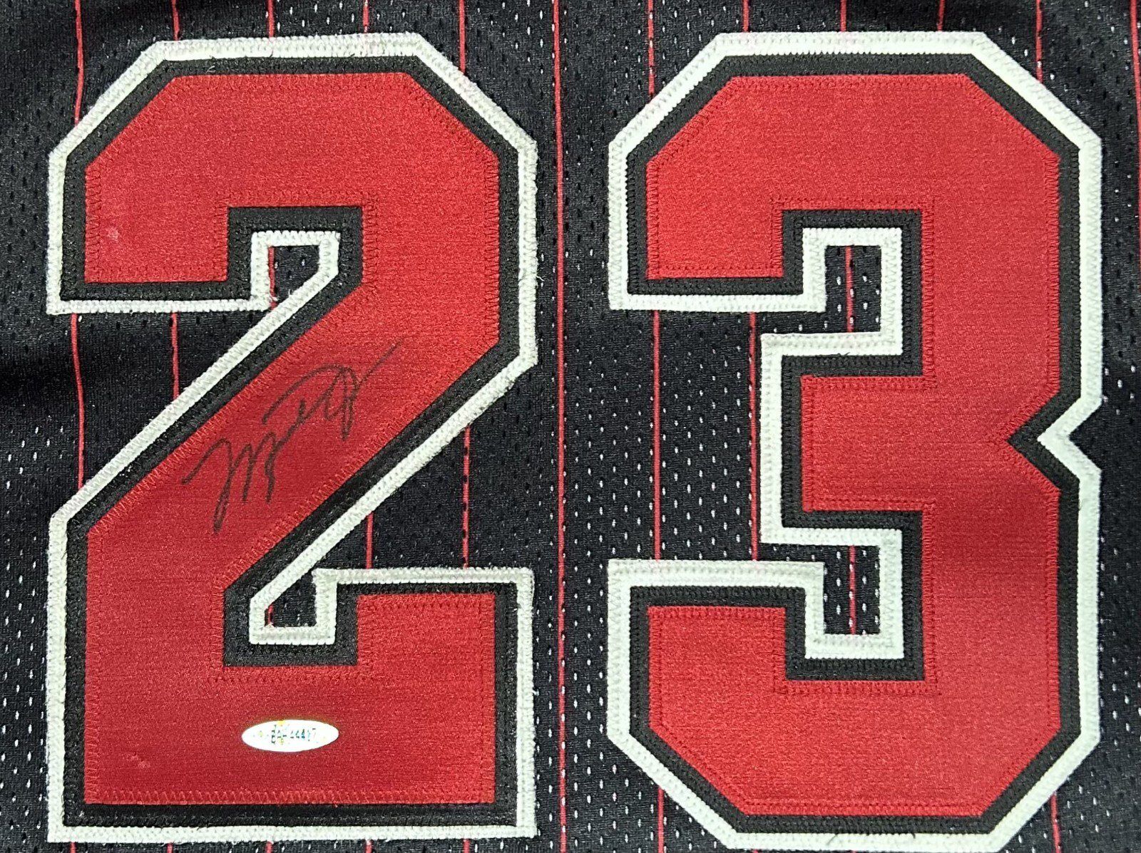 This is a hand autographed jersey signed by Michael Jordan. This is a Michael Jordan Chicago Bulls Champions Jersey. This item has a Upper Deck Authentication tamper proof sticker attached to the item. This item does not come with the matching UDA card. This item also comes authenticated with a Fuller Letter of authentication from GOAT Authentics. You can view this jerseys authentication on the GOAT Authentics website. (www.goat-authentics.com) All of our autographs are 100% Authentic.
