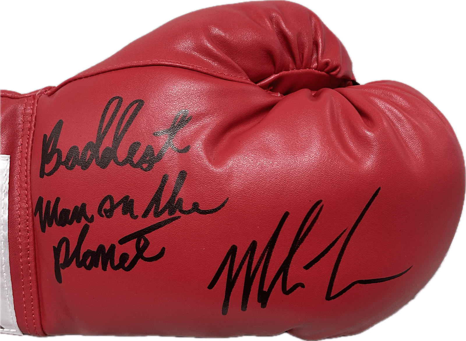 is a hand autographed leather boxing Glove signed by the person listed above. This glove comes with the inscription Baddest Man on The Planet. This is