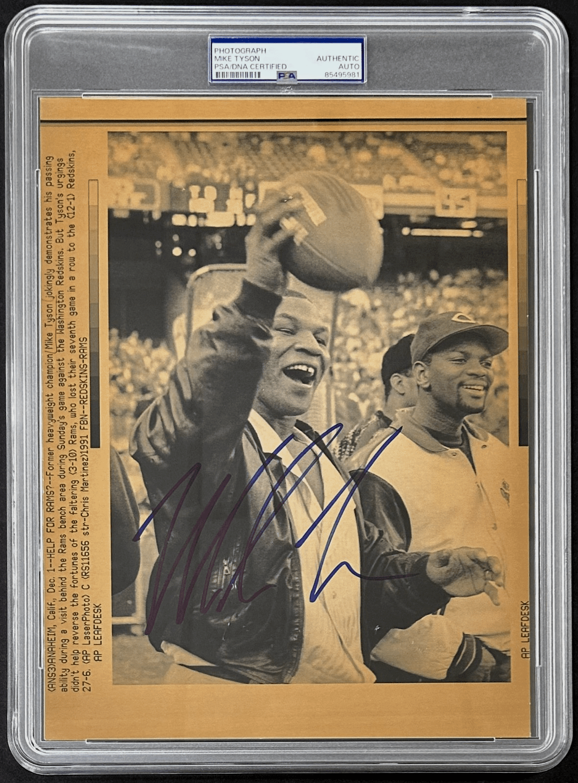 Mike Tyson Signed 1991 Type 3 Photograph PSA/DNA Tossing The Football LA Rams