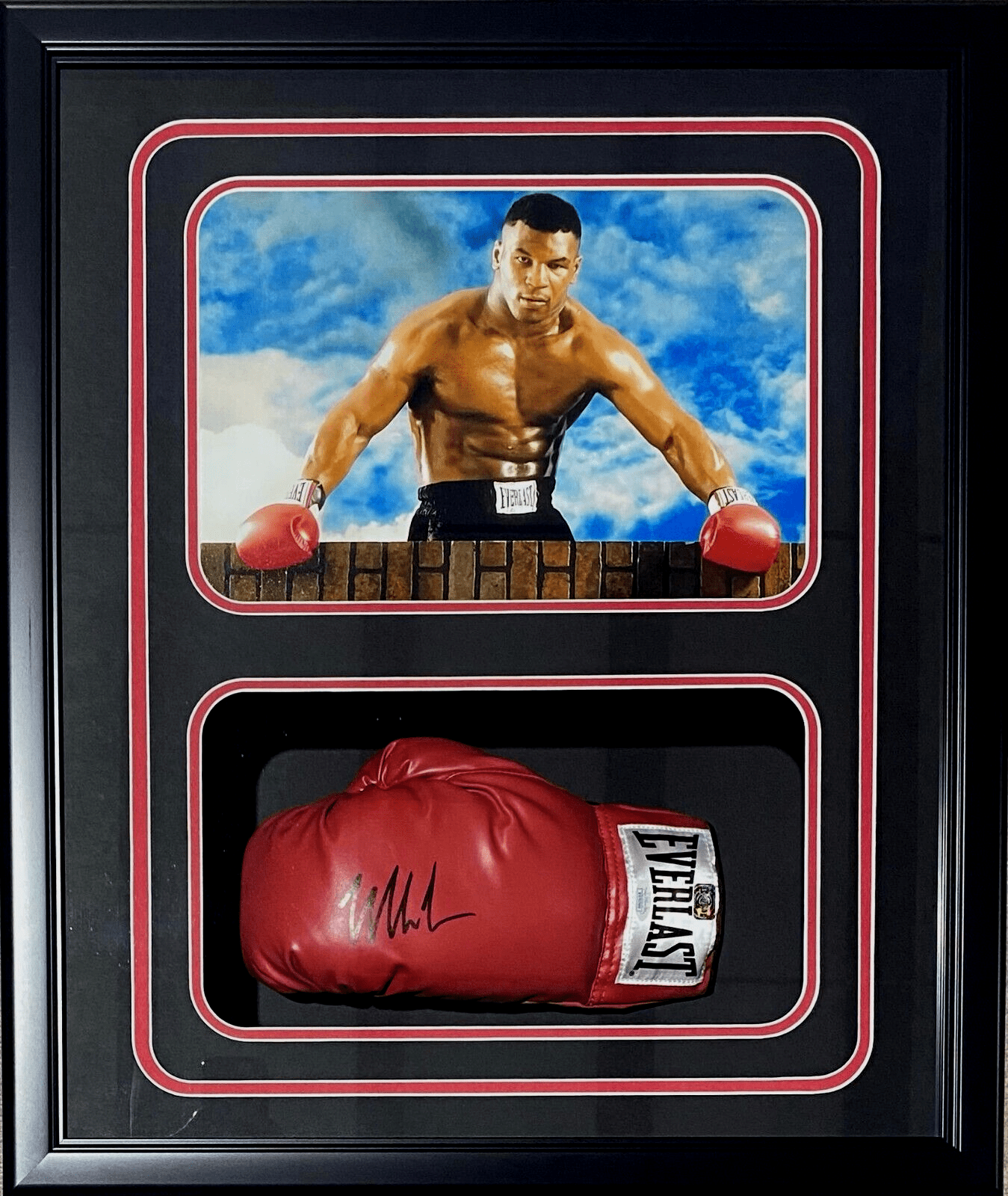 Mike Tyson Signed Red Glove Shadow Box JSA & Tyson Hologram Brick Wall
