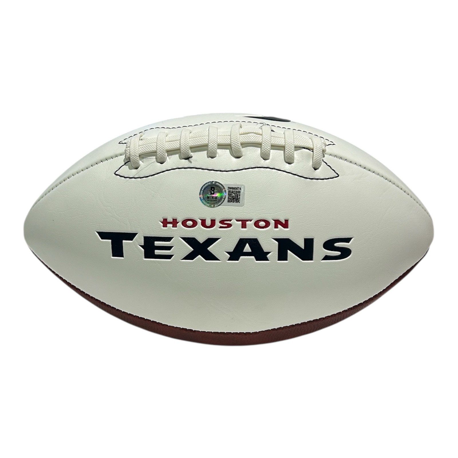 is a hand autographed football signed by the above mentioned player. This item has Beckett