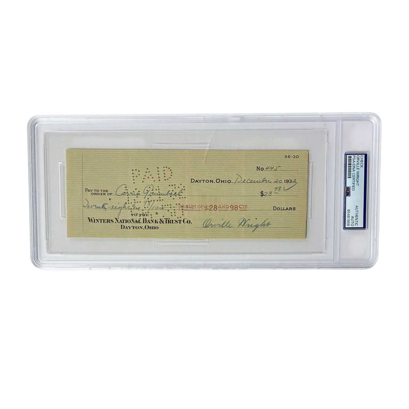 You are purchasing a autographed used check signed by Orville Wright.Â