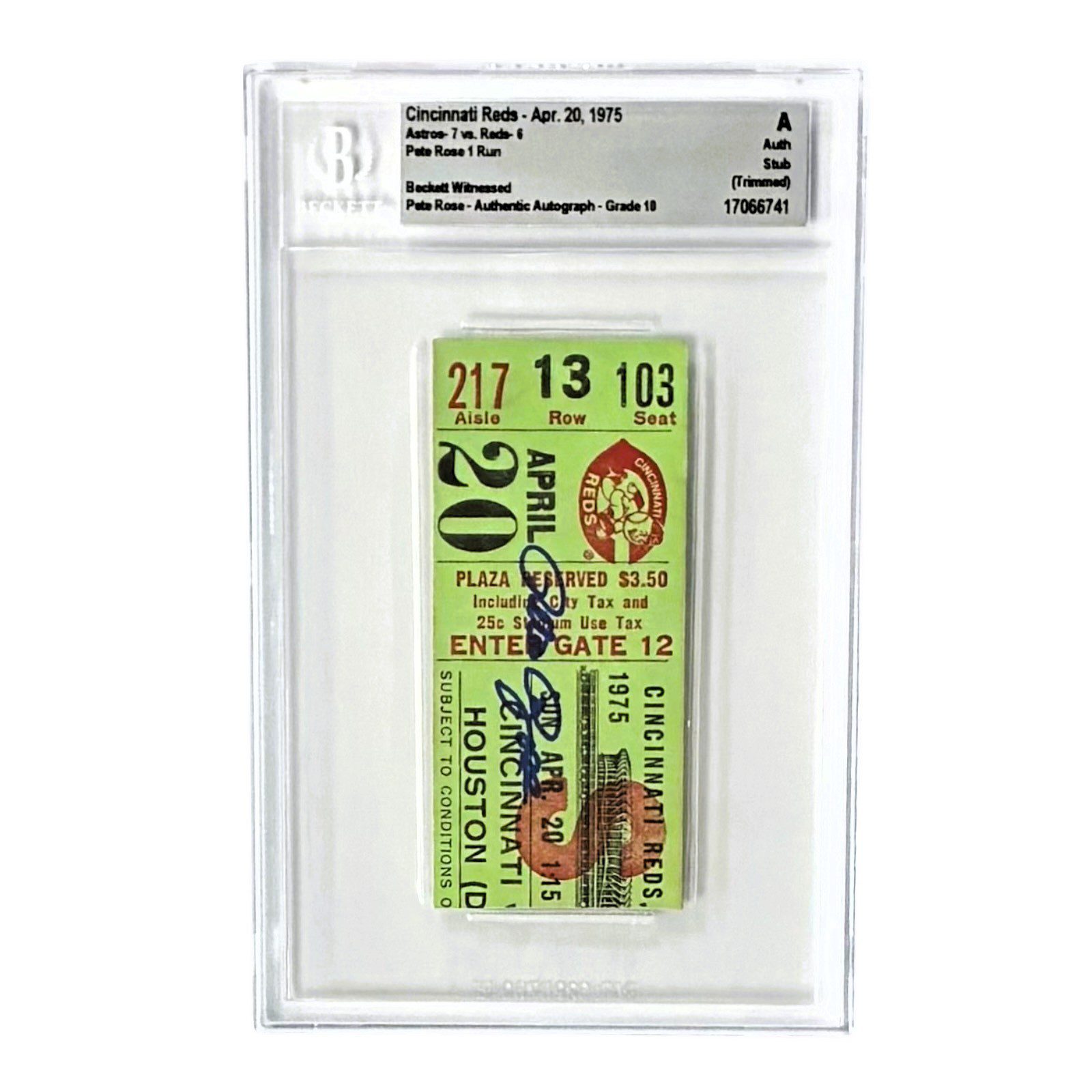 PETE ROSE AUTOGRAPHED TICKET STUB 4/20/1975 BECKETT AUTH STUB AUTO 10 17066741