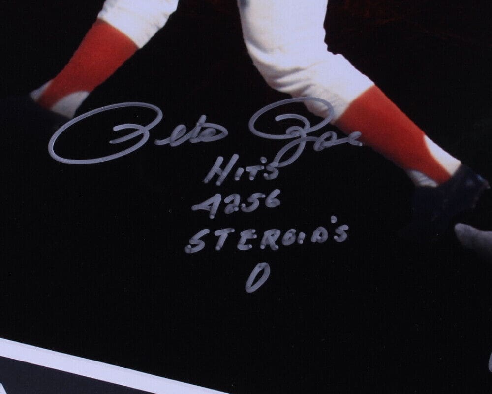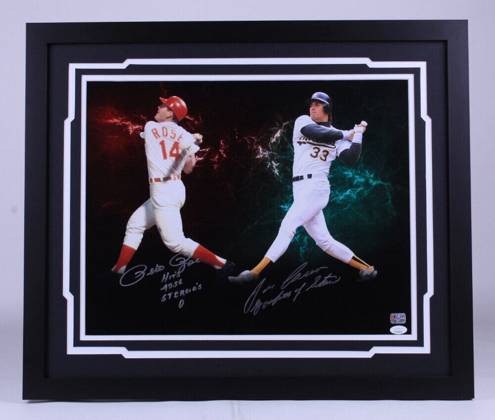 This is a hand autographed photo signed by the person listed above. This photo is 16 inches by 20 inches and is printed on the highest quality photo paper the frame size is 22×26. The photo comes with the following inscriptions: Pete Rose “4256 Hits 0 Steroids” Jose Canseco “Godfather of Steroids”. This item has a James Spence Authentication, which comes with a JSA #’ed tamper proof sticker attached to the item and a matching JSA certificate of authenticity card. You can view this items authentication on the JSA website which shows when and where the item was signed. This item also comes with a Pete Rose exclusive player hologram attached to the photo. All of our items are signed either at a public autograph appearance or a private signing. All of our autographs are 100% Authentic.