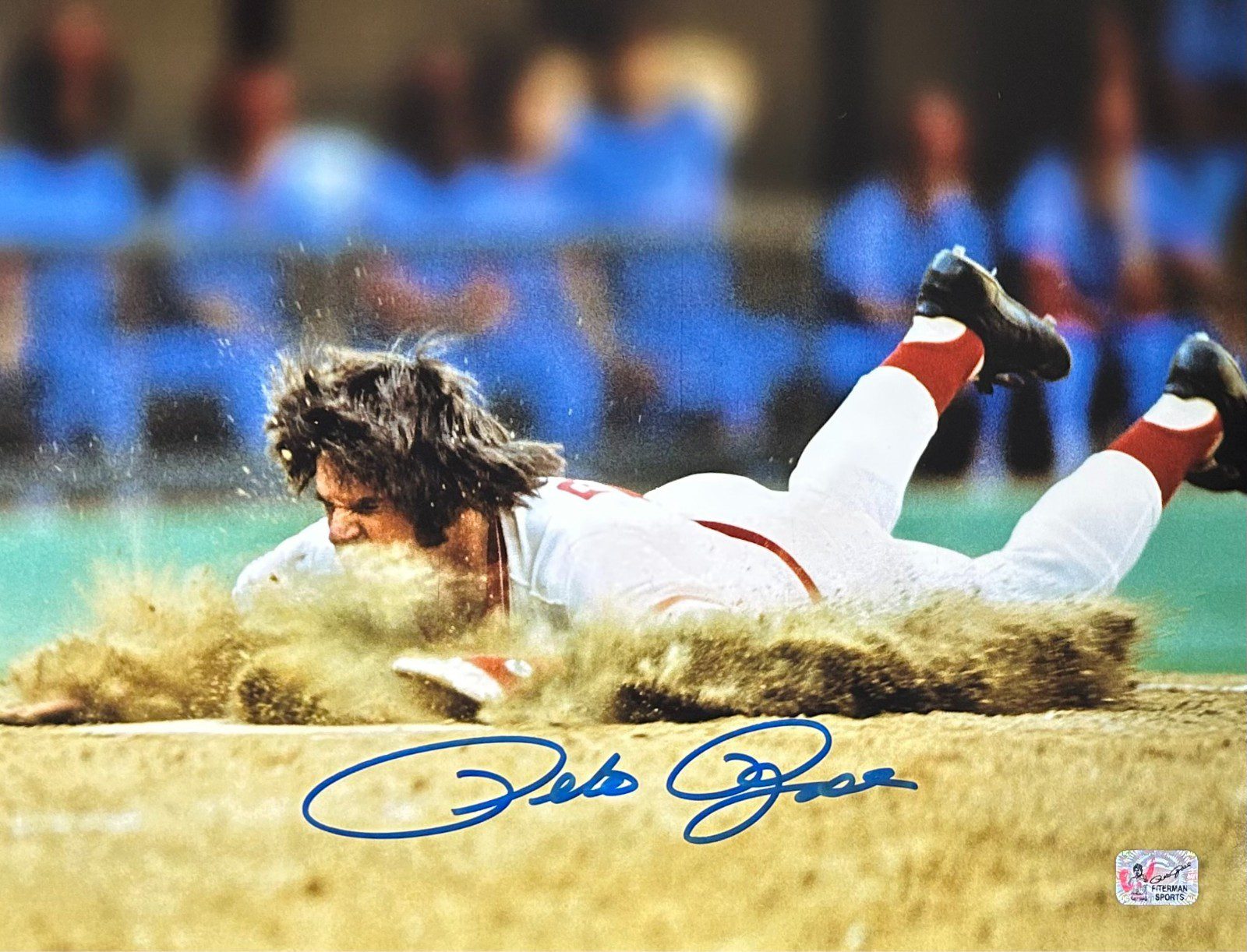 This is a hand autographed photo signed by the person listed above. This photo is 11 inches by 14 inches and is printed on the highest quality photo paper. This item has a Pete Rose Player Exclusive Hologram attached to the item.  All of our items are signed either at a public autograph appearance or a private signing. All of our autographs are 100% Authentic.