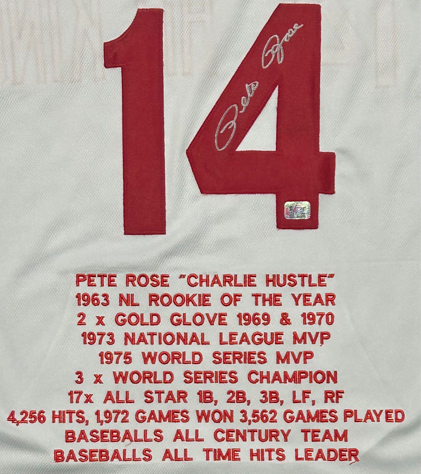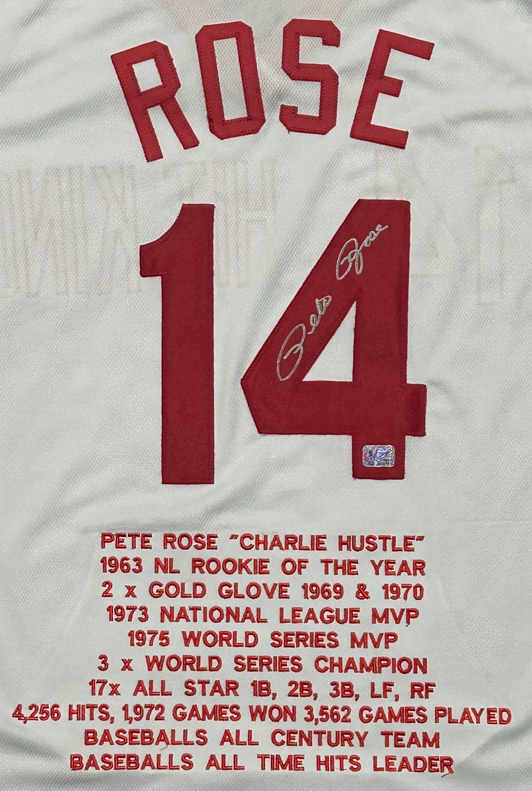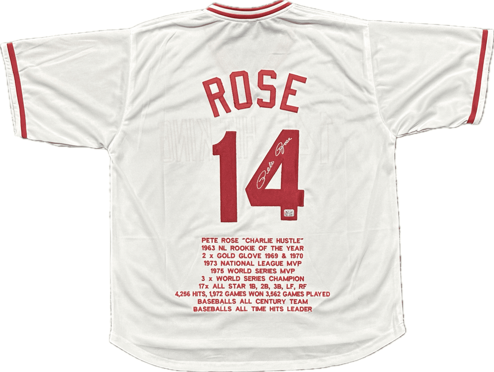 This is a hand autographed jersey signed by the person listed above. THIS IS NOT AN MLB JERSEY. THIS HAS NO TAGS, NO LOGOS, & NO EMBLEMS. This is a custom made; non name brand; authentic style jersey with all stitched letters and numbers. All jerseys are size XL and are brand new, never worn. This item has a Pte Rose Exclusive Authentication tamper proof hologram attached to the item. All of our items are signed either at a public autograph appearance or a private signing. All of our autographs are 100% Authentic.
